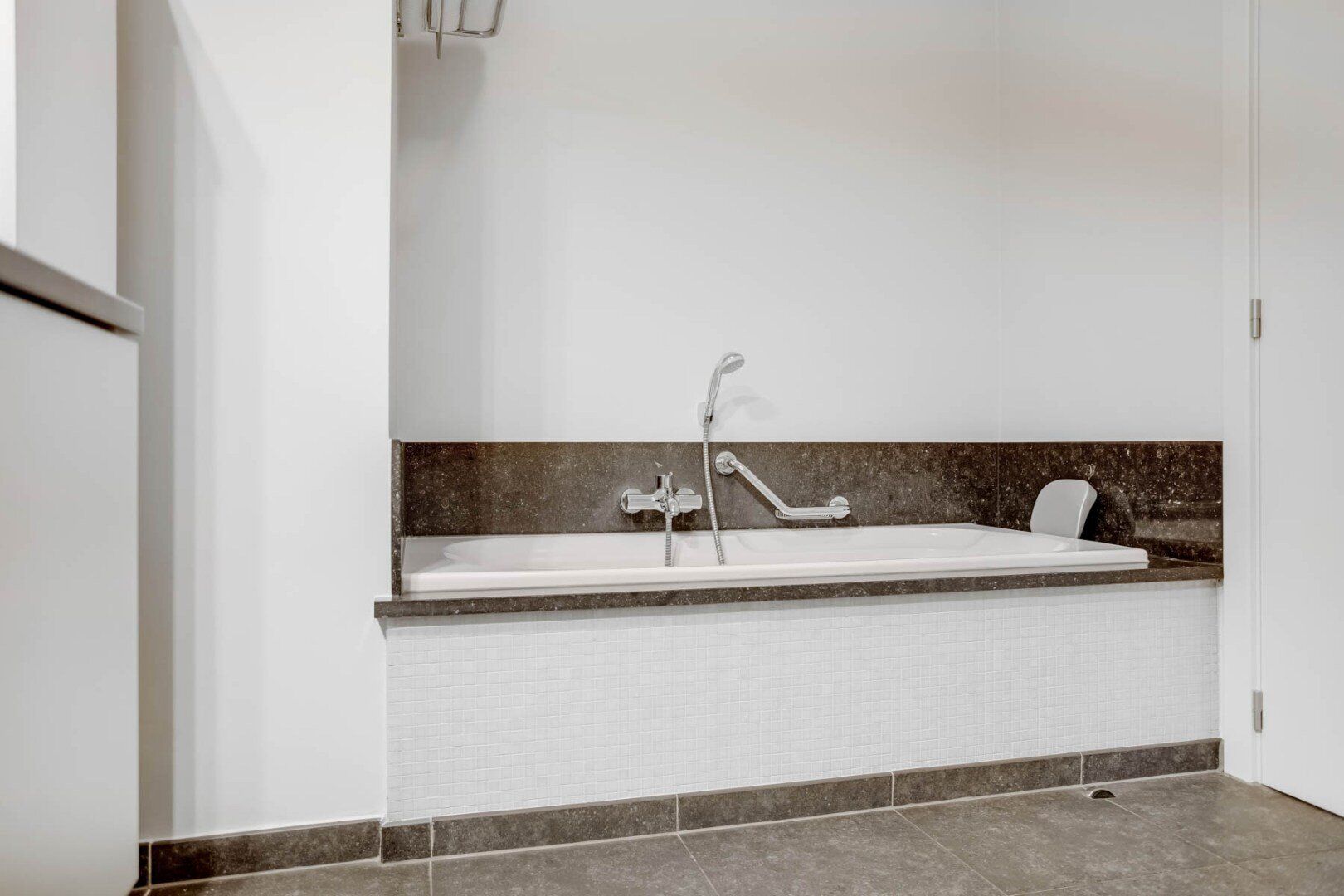 De nachthal geeft toegang tot de 2 slaapkamers, wasplaats en badkamer, deze is voorzien van een douche, ligbad en dubbele wastafel in meubel.