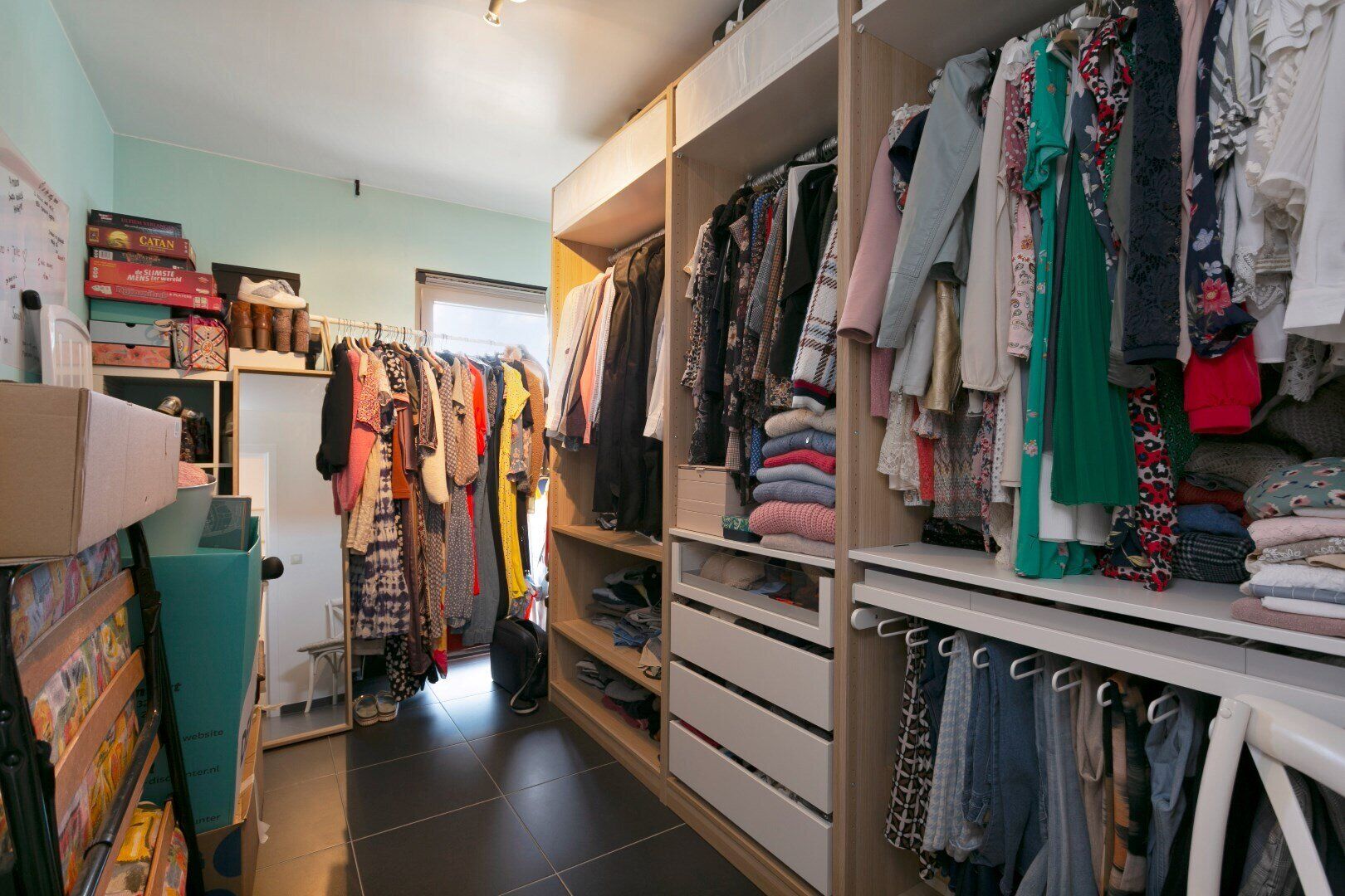 Via de inkomhal, met vestiaireruimte, komt u in de luchtige leefruimte welke opgedeeld is in een zit- en eethoek. Dankzij de grote raampartij (voorzien van screens) geniet u hier van aangenaam veel lichtinval en een zicht op het achterliggende groen.
