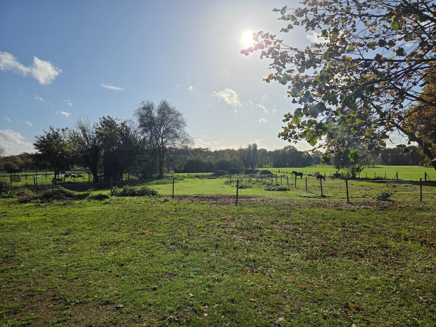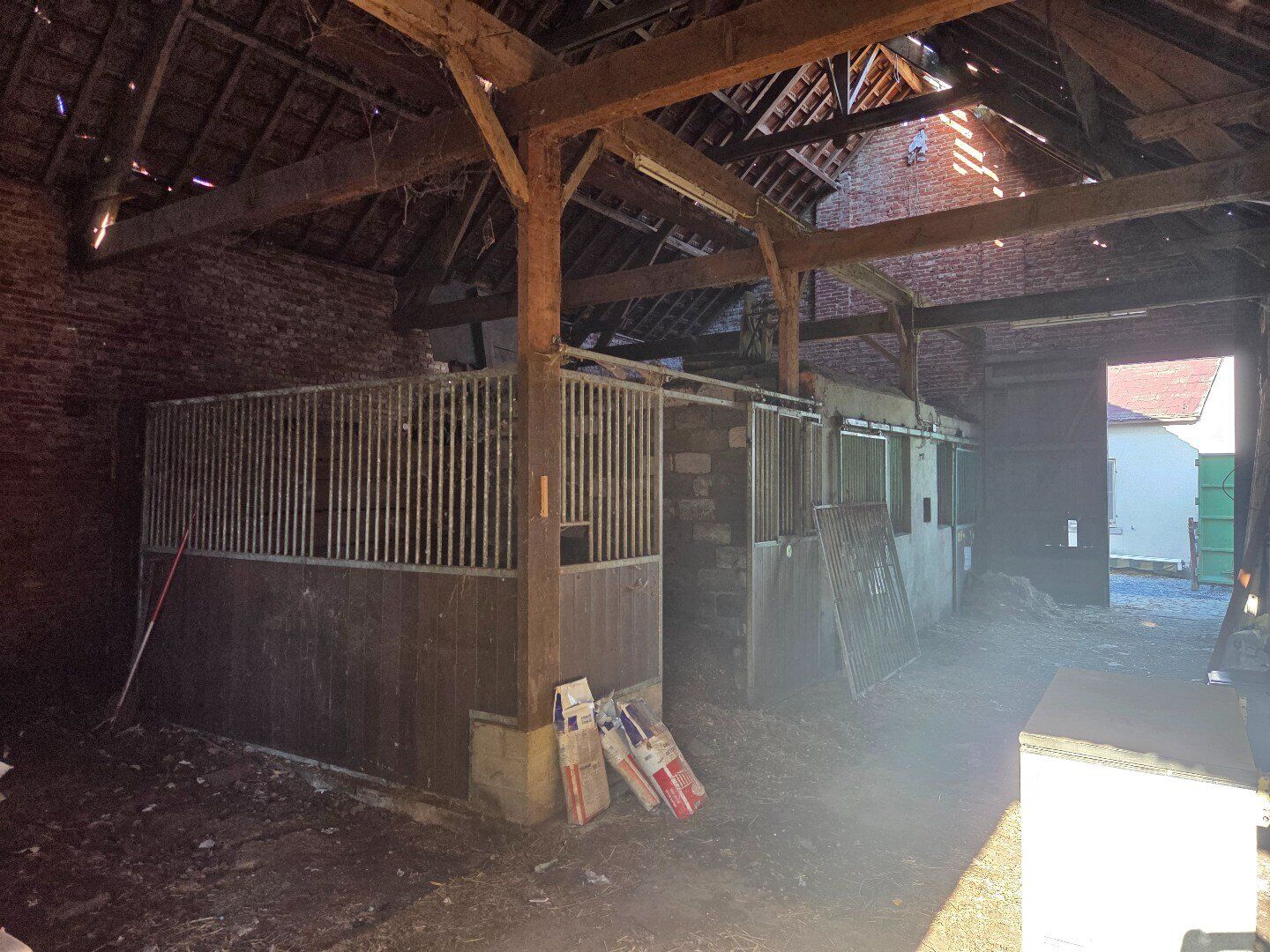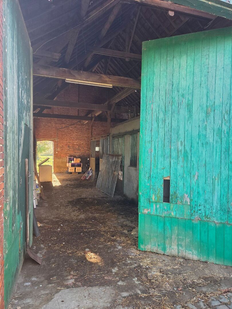 Het betreft een ruim, afgesloten en zuid gericht perceel van 2.288 m², voorzien van een ruime schuur (met 3 stallen) van 104 m² (kroonlijsthoogte van 4 meter en een nokhoogte van 7,75 meter) en een tuinberging met overdekt terras. Achteraan het perceel bevindt er zich een weiland (+/- 23 meter * 45 meter). Het dak van de schuur wordt nog hersteld.