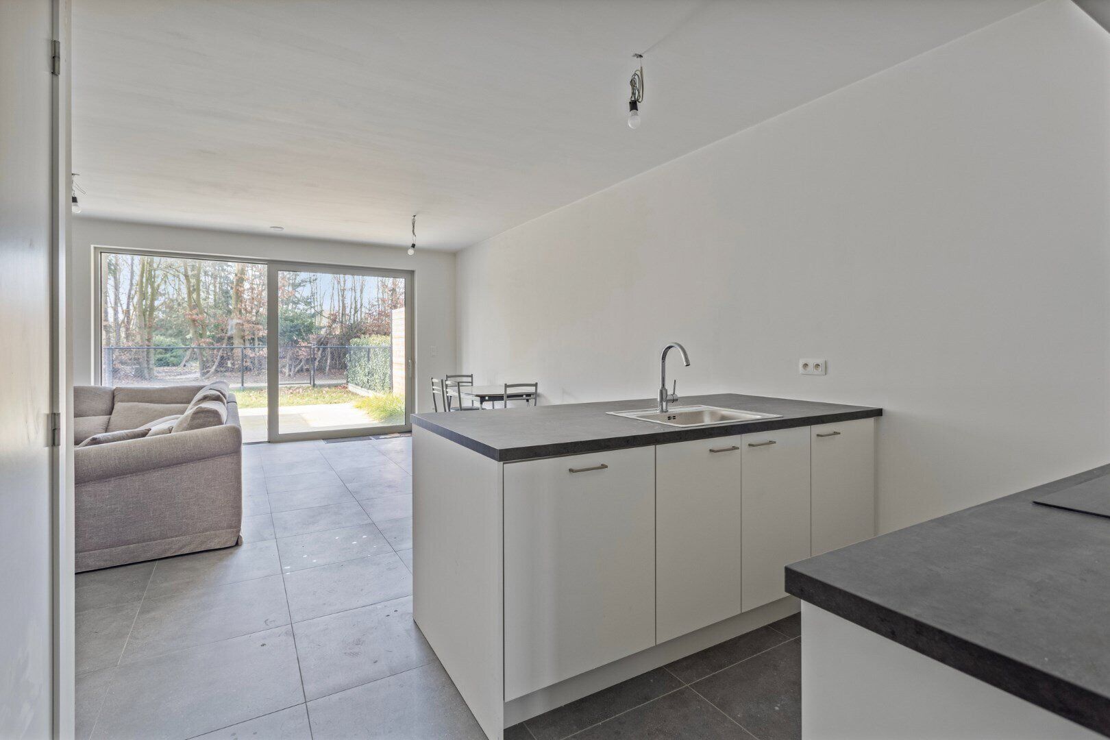 Bij binnenkomst via de inkomhal, die een vestiaire en gastentoilet biedt, komt u in leefruimte met een open keuken. Deze keuken is uitgerust met kwalitatieve toestellen, zoals een koelkast, vaatwasser, combi-oven, inductiekookplaat, afzuigkap en spoeltafel, en biedt voldoende opbergruimte. De berging naast de keuken kan praktisch worden ingedeeld. Door het grote schuifraam bereikt u de zonovergoten tuin met een gezellig overdekt terras. De tuin is volledig omheind en toegankelijk via het achterliggende fietspad.