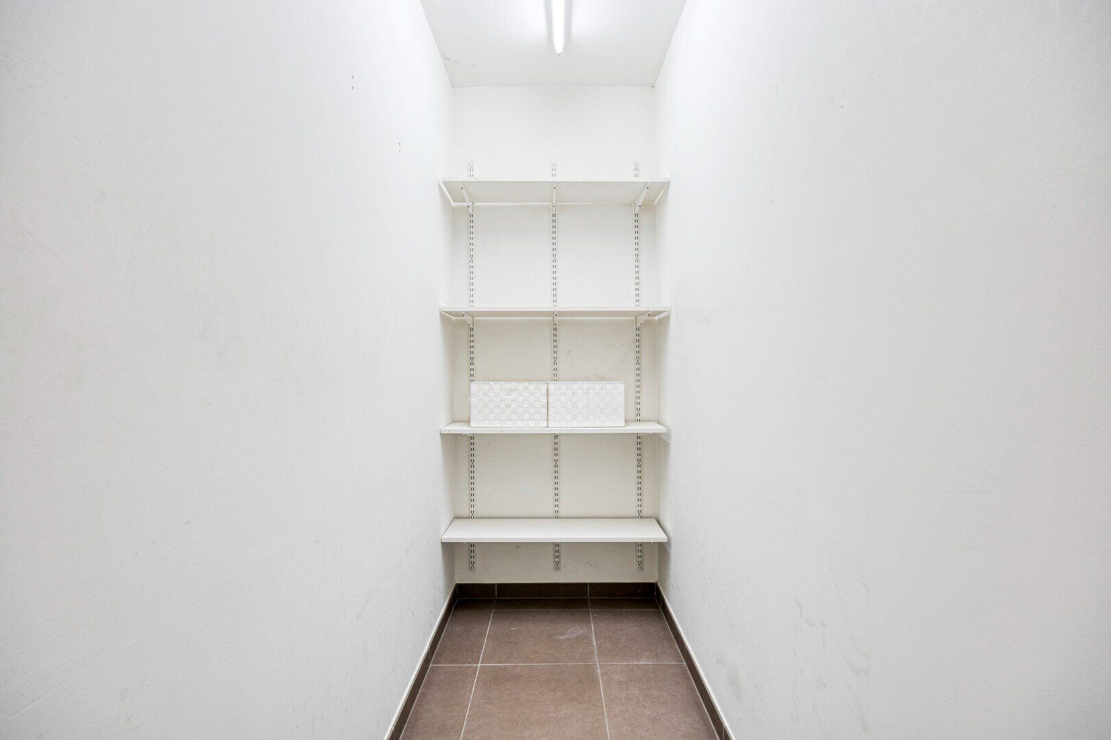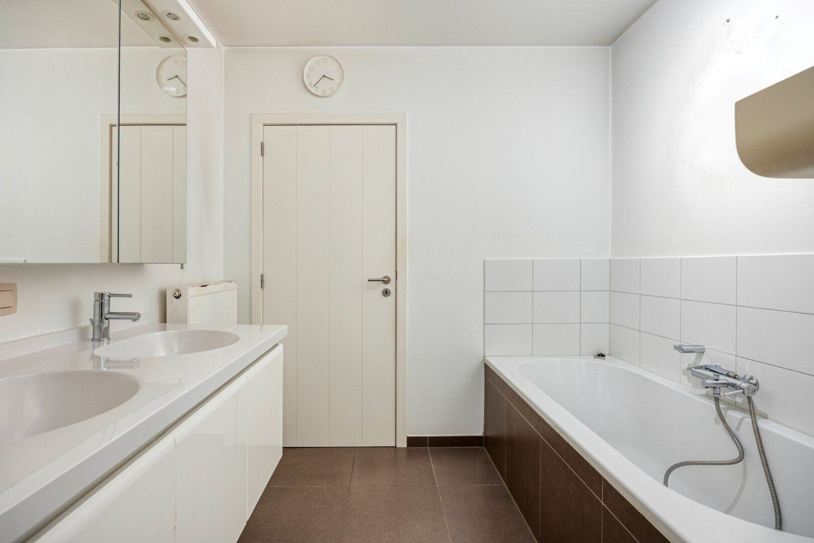 De hal biedt toegang tot drie slaapkamers, een badkamer, een apart toilet en een handige berging/dressing. Twee slaapkamers zijn voorzien van rolluiken en geven uit op de achtertuin met terras. De badkamer is uitgerust met een ligbad, douche en een dubbele wastafel in meubel.