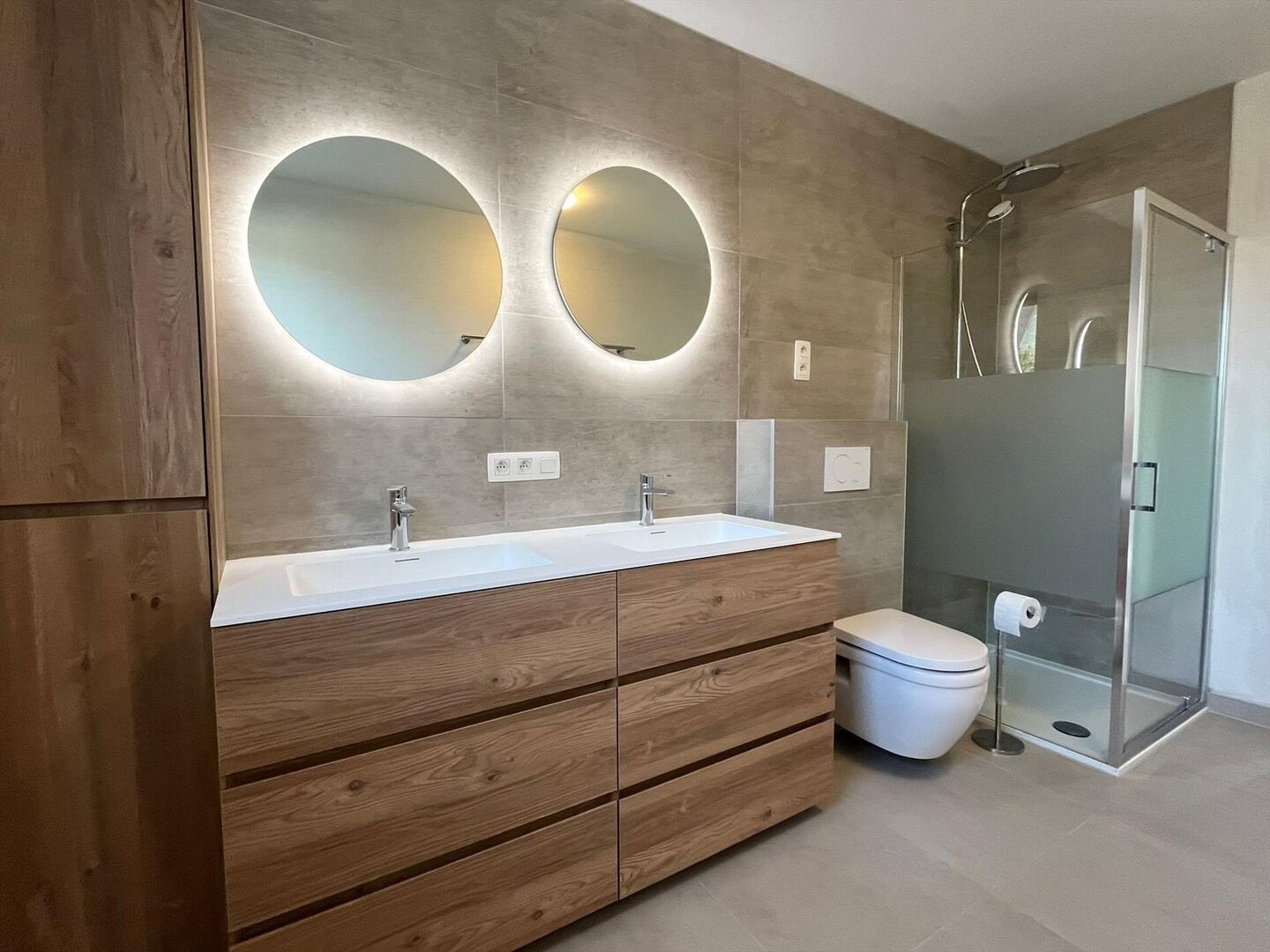 Via de inkomhal, met vestiaire en gastentoilet, komen we terecht in de ruime woonkamer. Deze is opgedeeld in een eethoek, zithoek, bureauruimte en open keuken. De keuken is voorzien van een vaatwasser, koelkast, combi-oven, inductiekookplaat, spoeltafel en voldoende opbergruimte! Aansluitend is er een ruime berging/wasplaats aanwezig.