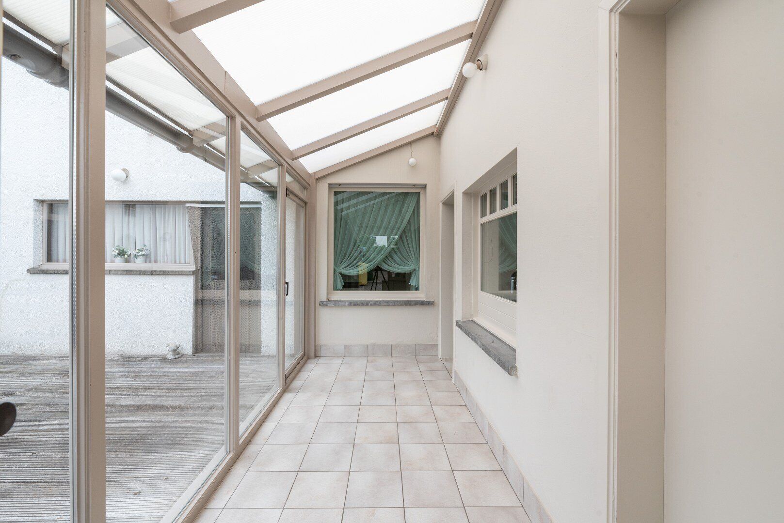 Via de inkomhal kom je terecht in de leefruimte, eetkamer en aansluitende keuken, die is uitgerust met een kookplaat, afzuigkap, dubbele spoeltafel, koelkast, vriezer... Via de keuken heb je toegang tot de veranda en wasplaats.