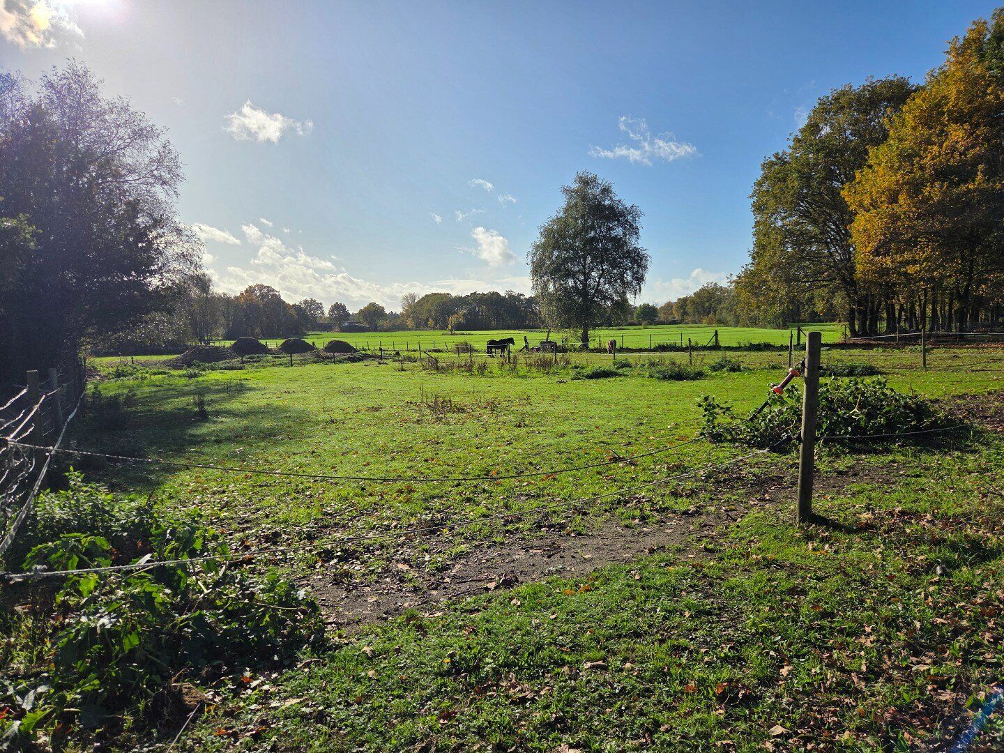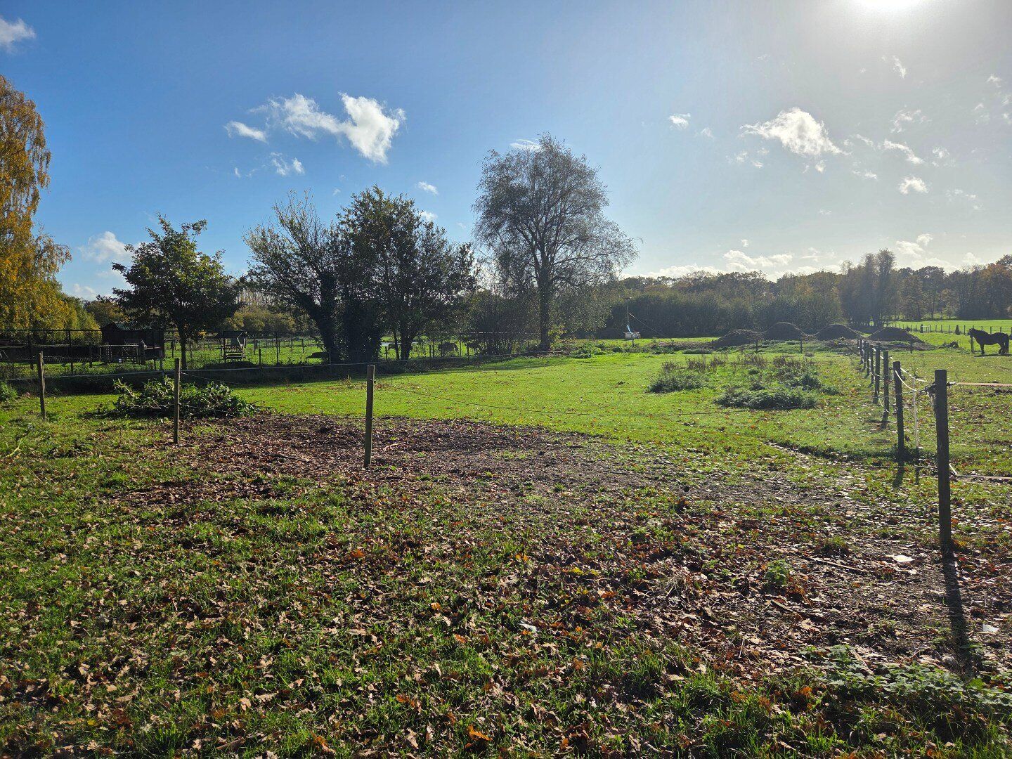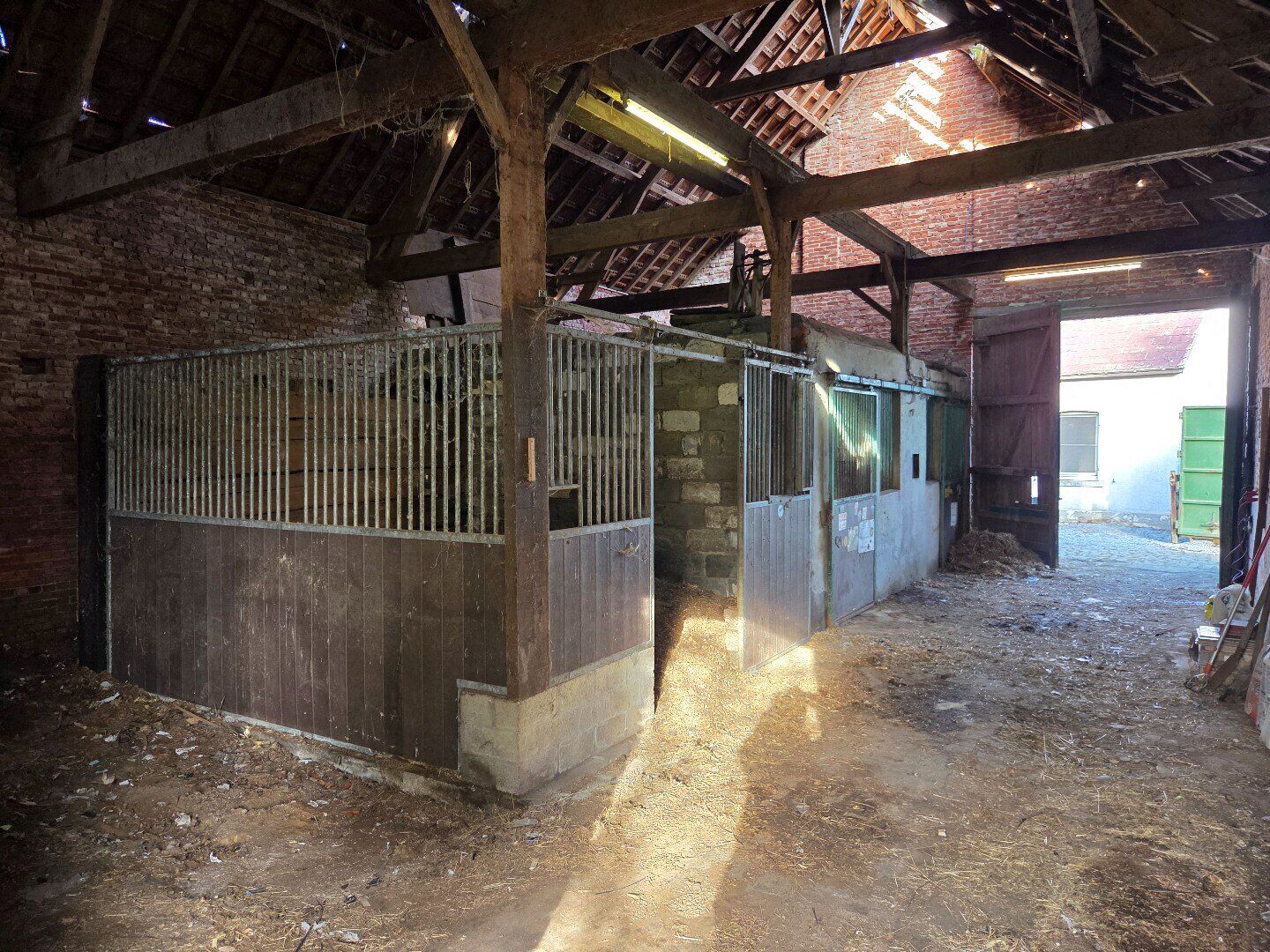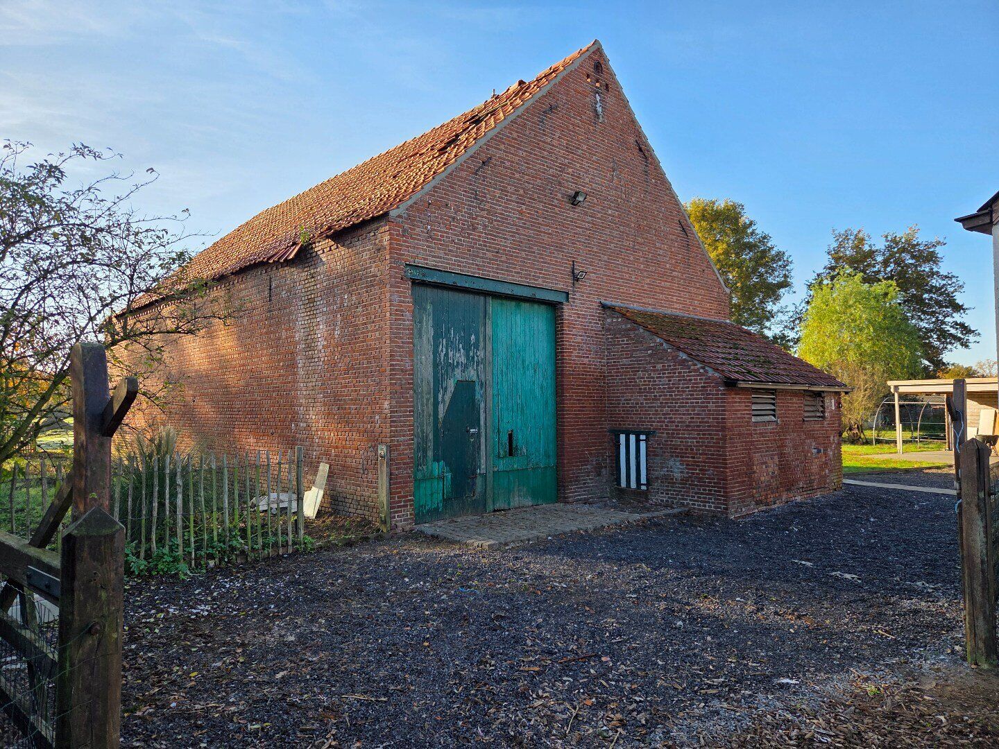 Het betreft een ruim, afgesloten en zuid gericht perceel van 2.288 m², voorzien van een ruime schuur (met 3 stallen) van 104 m² (kroonlijsthoogte van 4 meter en een nokhoogte van 7,75 meter) en een tuinberging met overdekt terras. Achteraan het perceel bevindt er zich een weiland (+/- 20 meter * 45 meter). Het dak van de schuur wordt nog hersteld.