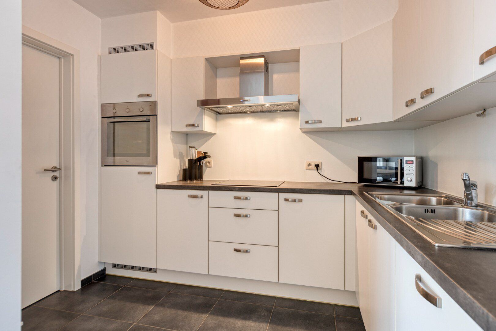 De keuken geeft toegang tot de berging/wasplaats waar je dan weer profiteert van een rechtstreekse verbinding naar de tuin.