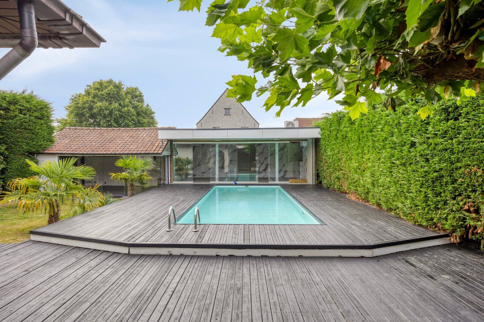 De volledig aangelegde tuin vormt een echt buitenparadijs met een zwembad, poolhouse en een extra garage. Het zwembad wordt verwarmd met een warmtepomp. In de poolhouse is er ook een airco aanwezig.