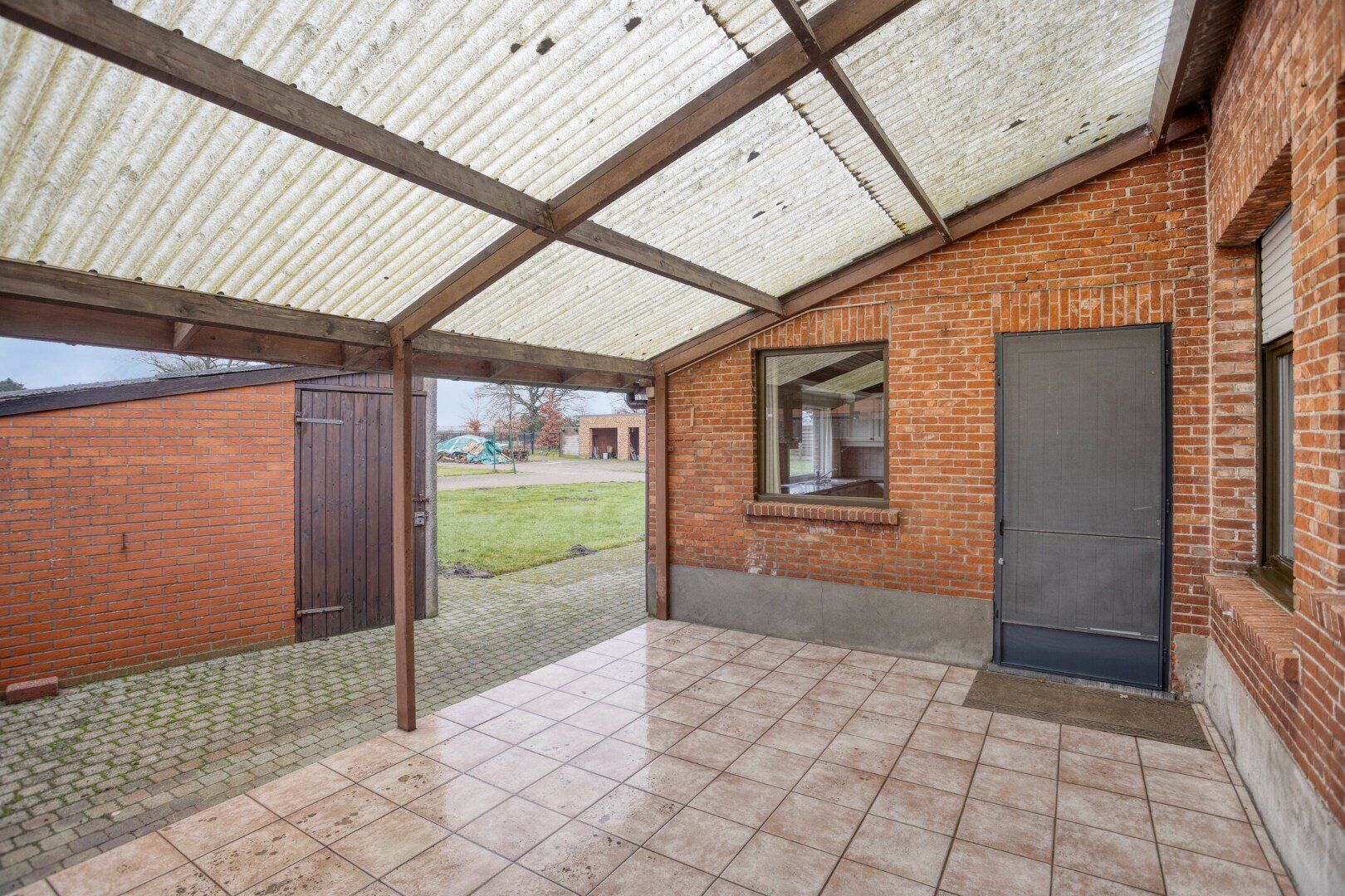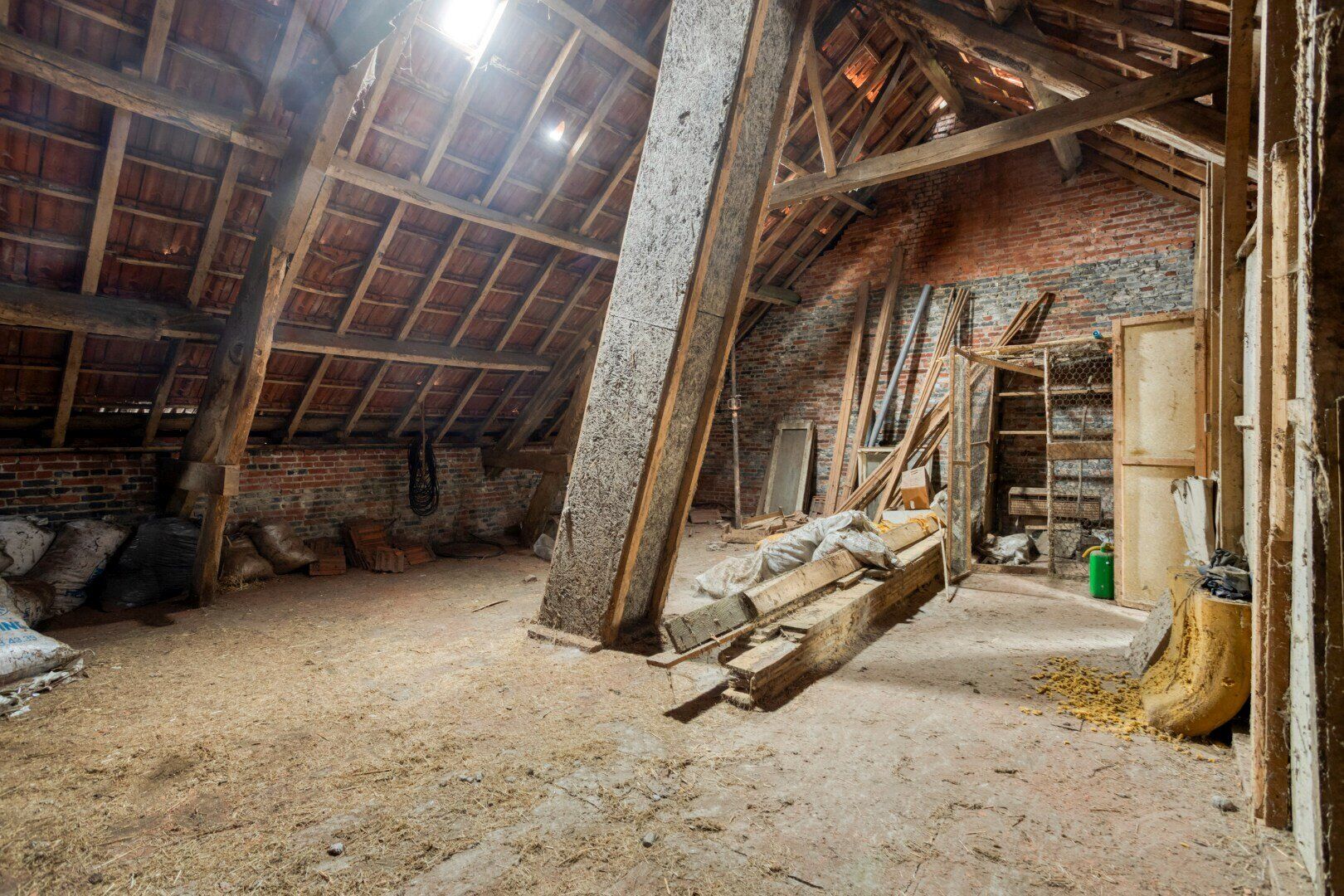 Het rechtse gedeelte van deze eigendom is momenteel volledig ingericht als schuur. Deze ruimte kan mits de nodige renovatiewerken geïntegreerd worden als uitbreiding van het woongedeelte of behouden blijven als opslag van materialen of dieren.