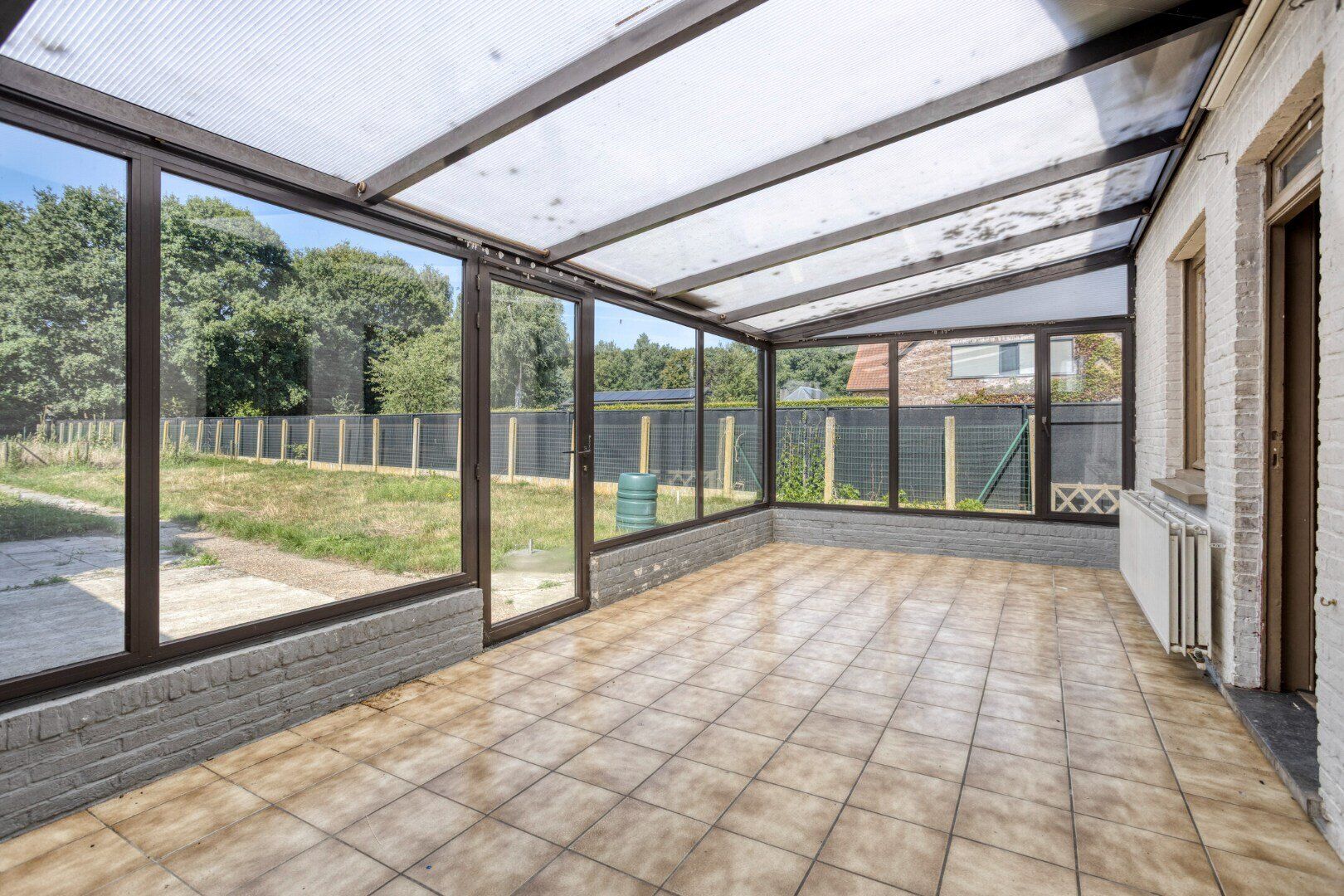 Achteraan de woning geniet je van een ruime volledig omheinde tuin. Er is voldoende parkeergelegenheid op de oprit, en er is tevens een garage aanwezig.