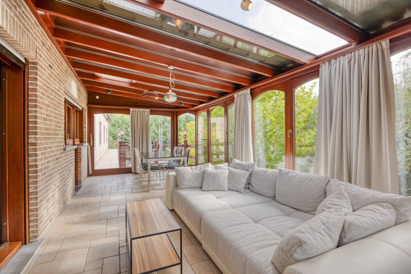 U geniet zowel vooraan, achteraan als naast de woning van een ruime, goed onderhouden en proper aangelegd tuin. Hier kan u optimaal genieten van rust en privacy.