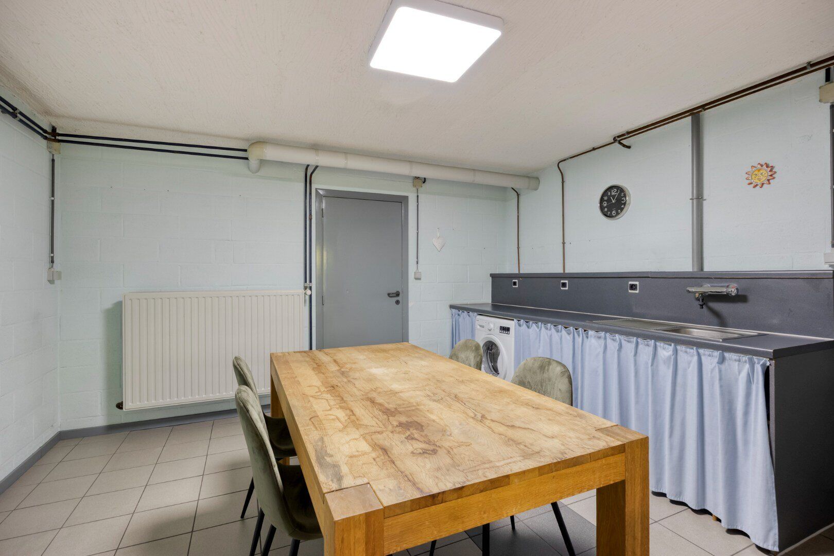 De kelder (288 m²) welke onder de volledige woning loopt is bereikbaar via vaste trap of via de garagepoort achteraan de woning. Deze is deels ingericht als garage maar ook deels als bruikbare woonoppervlakte. Zo zijn hier momenteel 2 kamers, een ruime recreatieruimte, voorraadkelder en een tweede badkamer met sauna, inloopdouche, wastafel en extra toilet.
