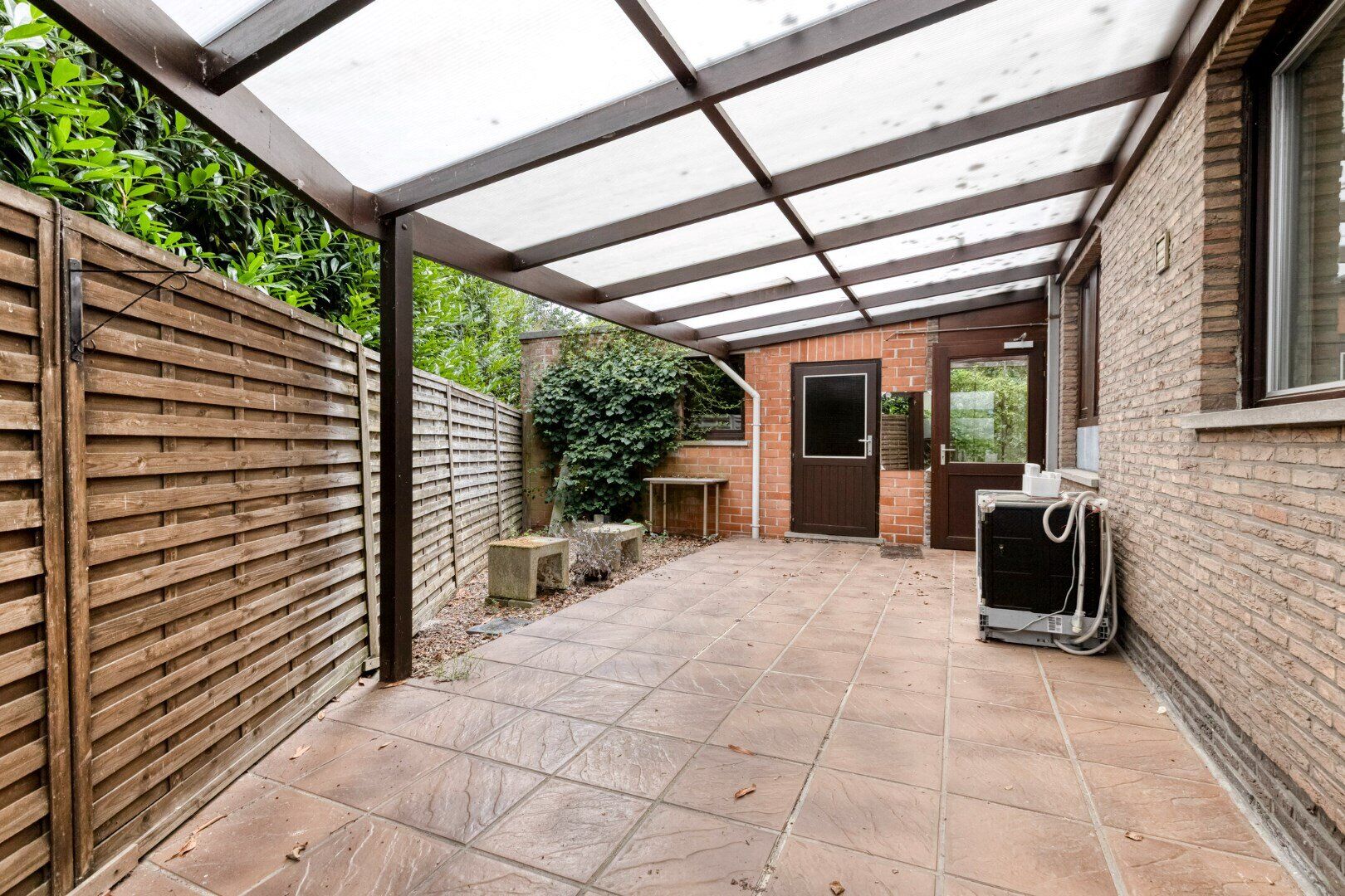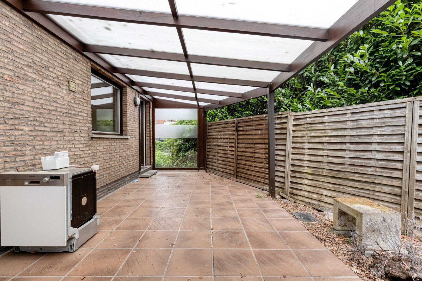 De volledig omheinde tuin beschikt over een groot terras met overkapping, perfect om het hele jaar door van buiten te genieten, én een ruime garage met automatische poort.