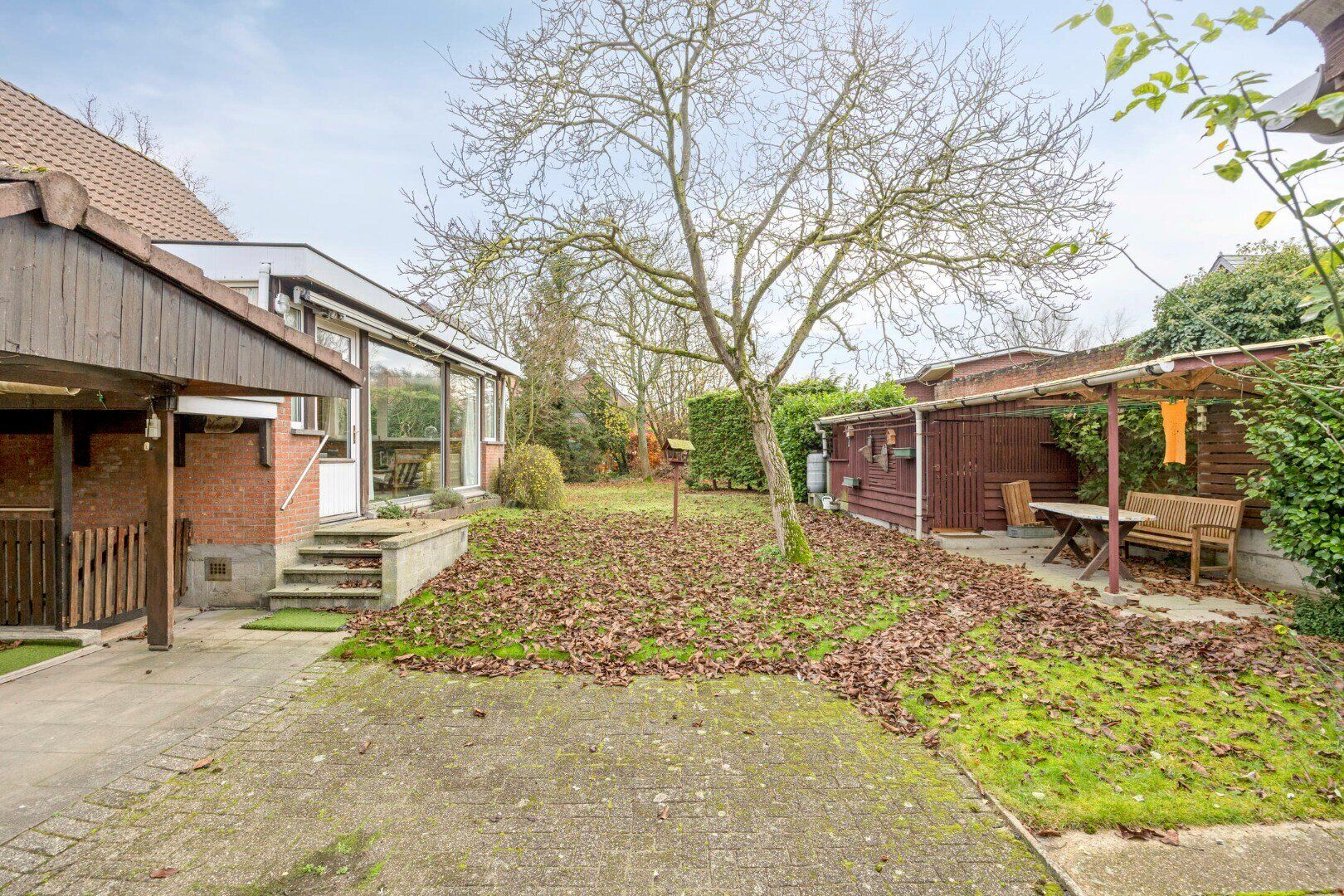 U geniet zowel achteraan de woning als naast de woning van een gezellige tuin.