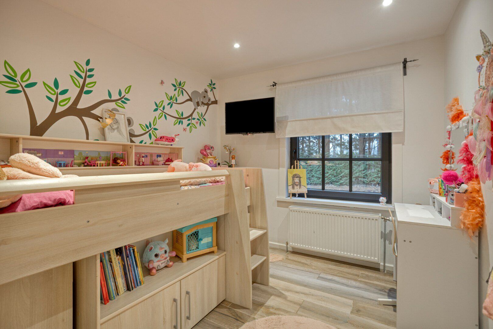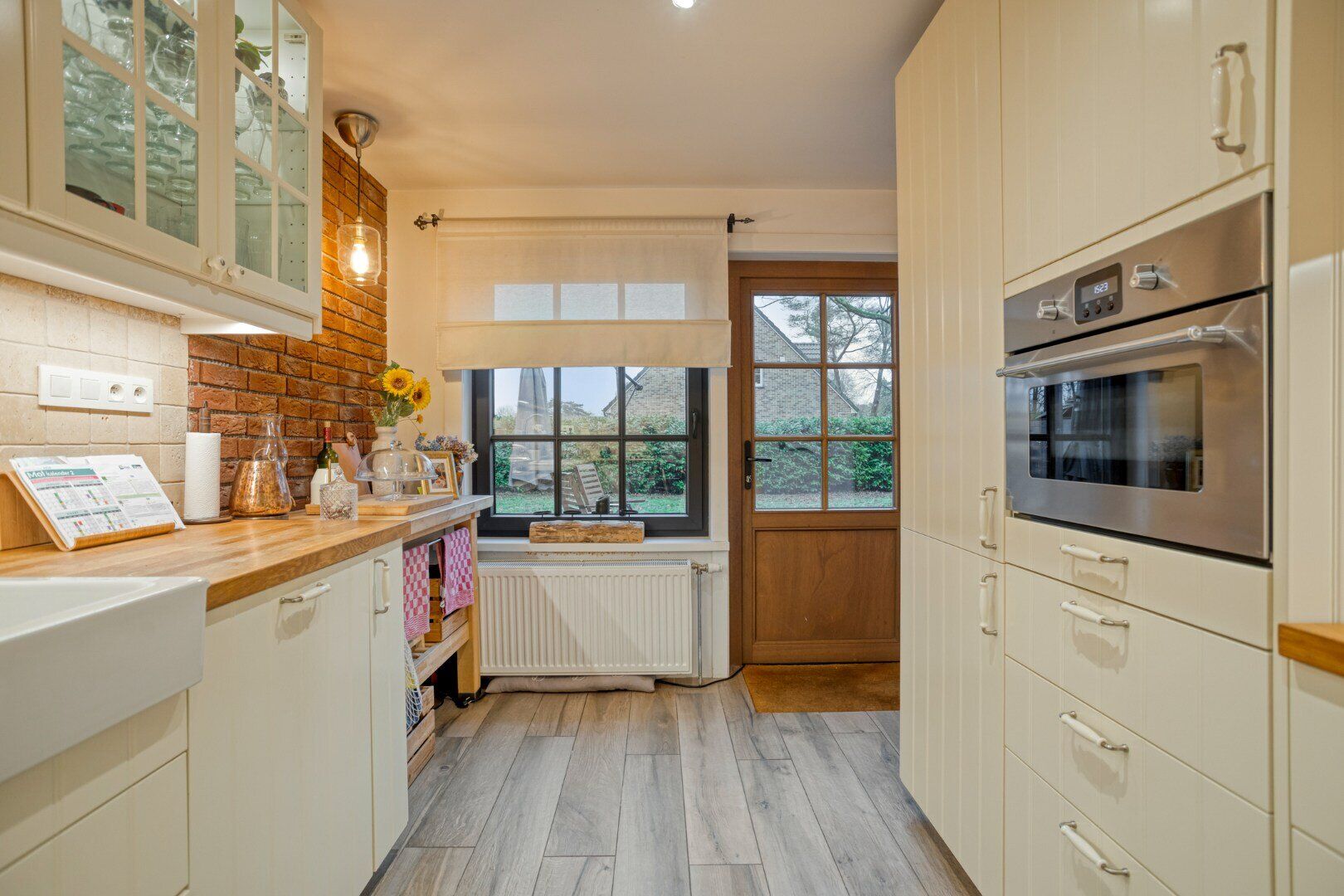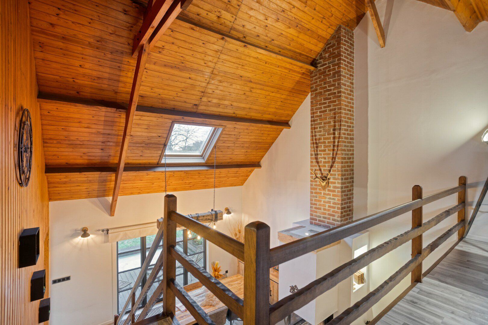 Bij binnenkomst wordt je verwelkomd in een mooie inkomhal die toegang biedt tot de woonkamer en nachthal. De sfeervolle ruime woonkamer beschikt over een houtkachel, wat bijdraagt aan een warme en gezellige sfeer. Deze woonkamer wordt verwend door aangenaam veel lichtinval en de gewenste zonneverduistering. De eetplaats in de leefruimte grenst aan de keuken en biedt een prachtig zicht over de tuin.