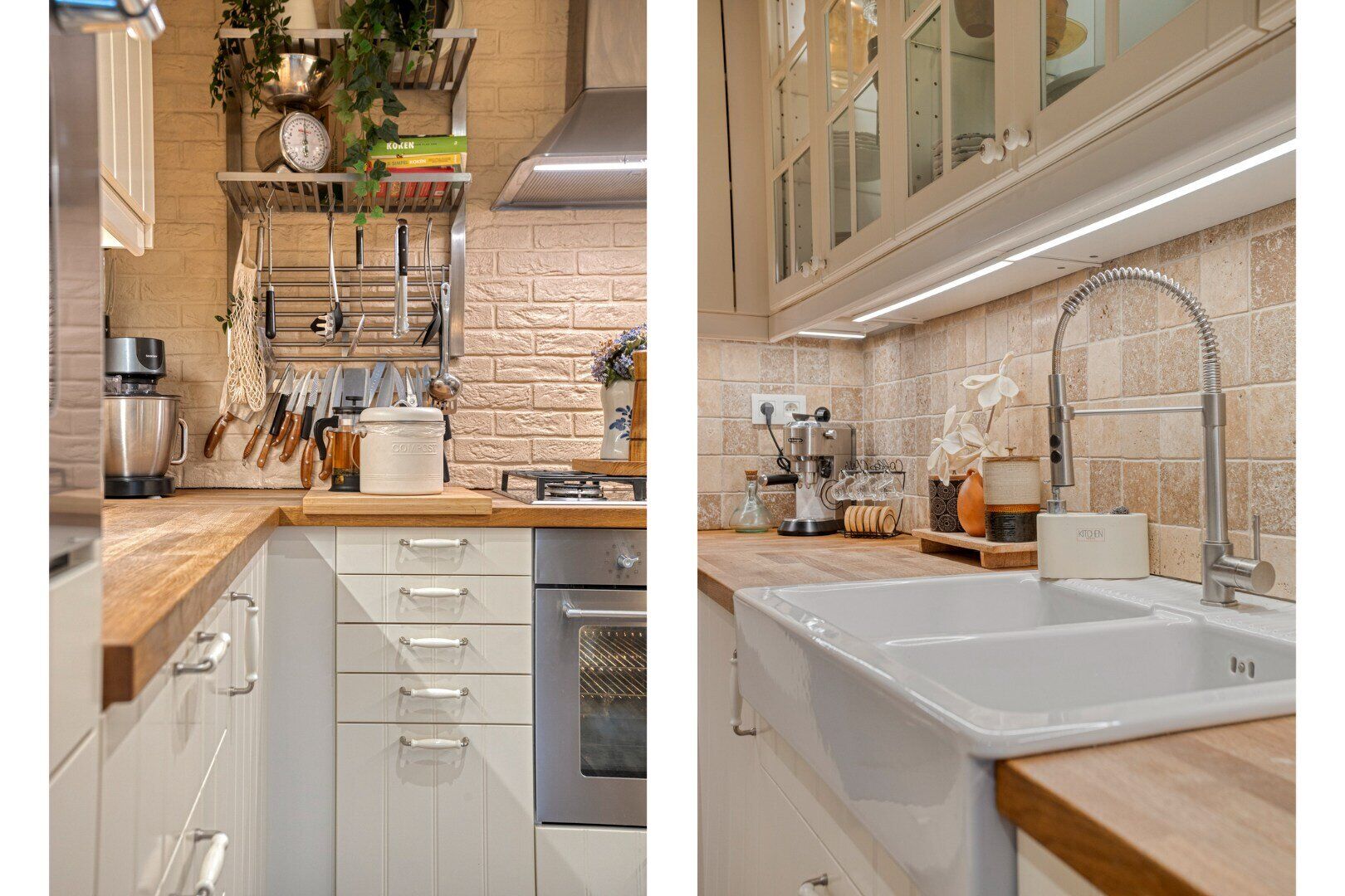Deze keuken is volledig uitgerust met kwalitatieve inbouwapparaturen waaronder een gaskookplaat, afzuigkap, combi-oven, combi-stoomoven, vaatwasser en koelkast.