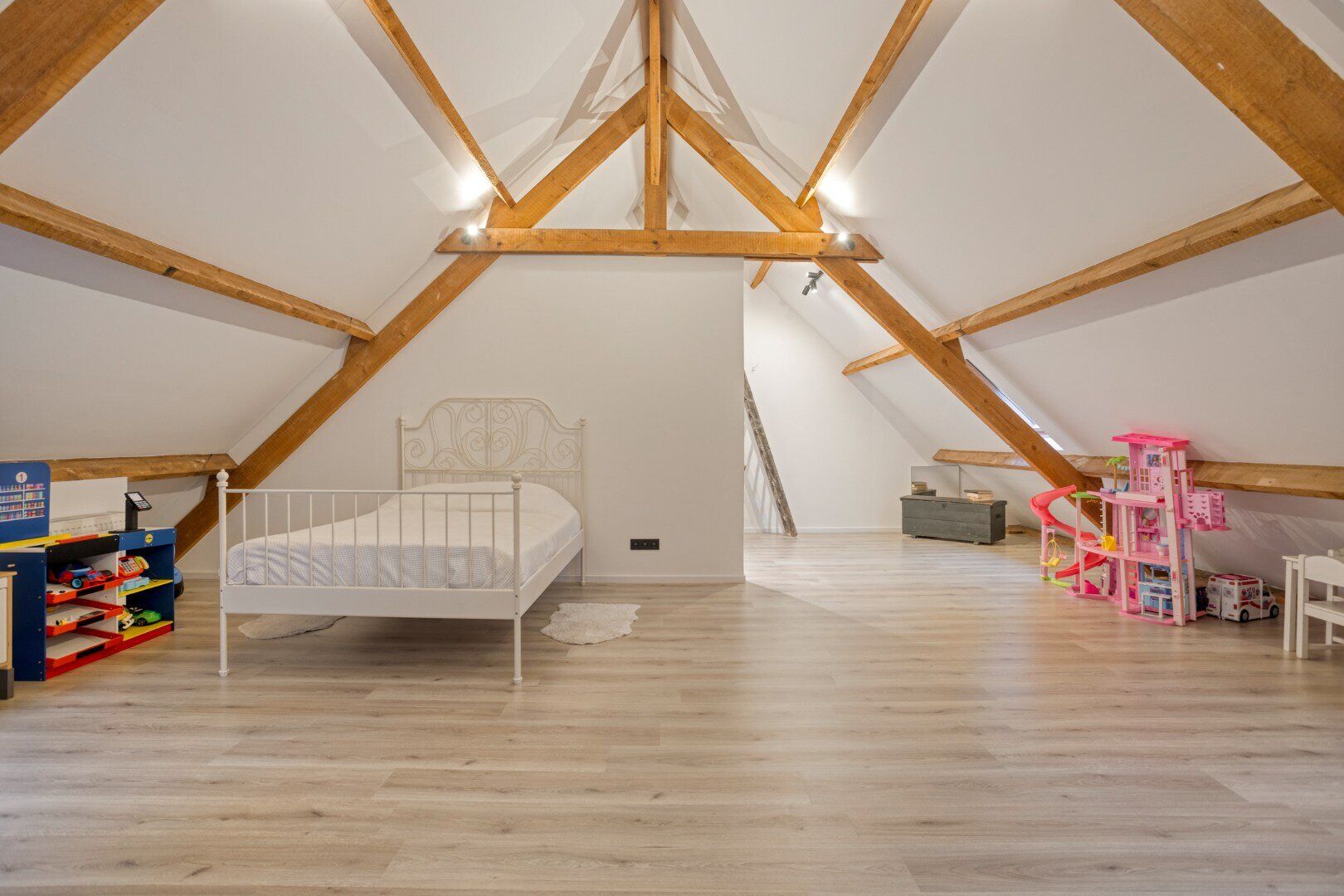Via vaste trap betreedt je de verdieping met vide, gezellige lounchehoek en studio/ loft. Deze gezellige ruimte van ca 68 m² kan ingedeeld worden als vierde luxe slaapkamer met ruimte voor een zithoek en is voorzien van een ensuite badkamer met inloopdouche, toilet en wastafel.