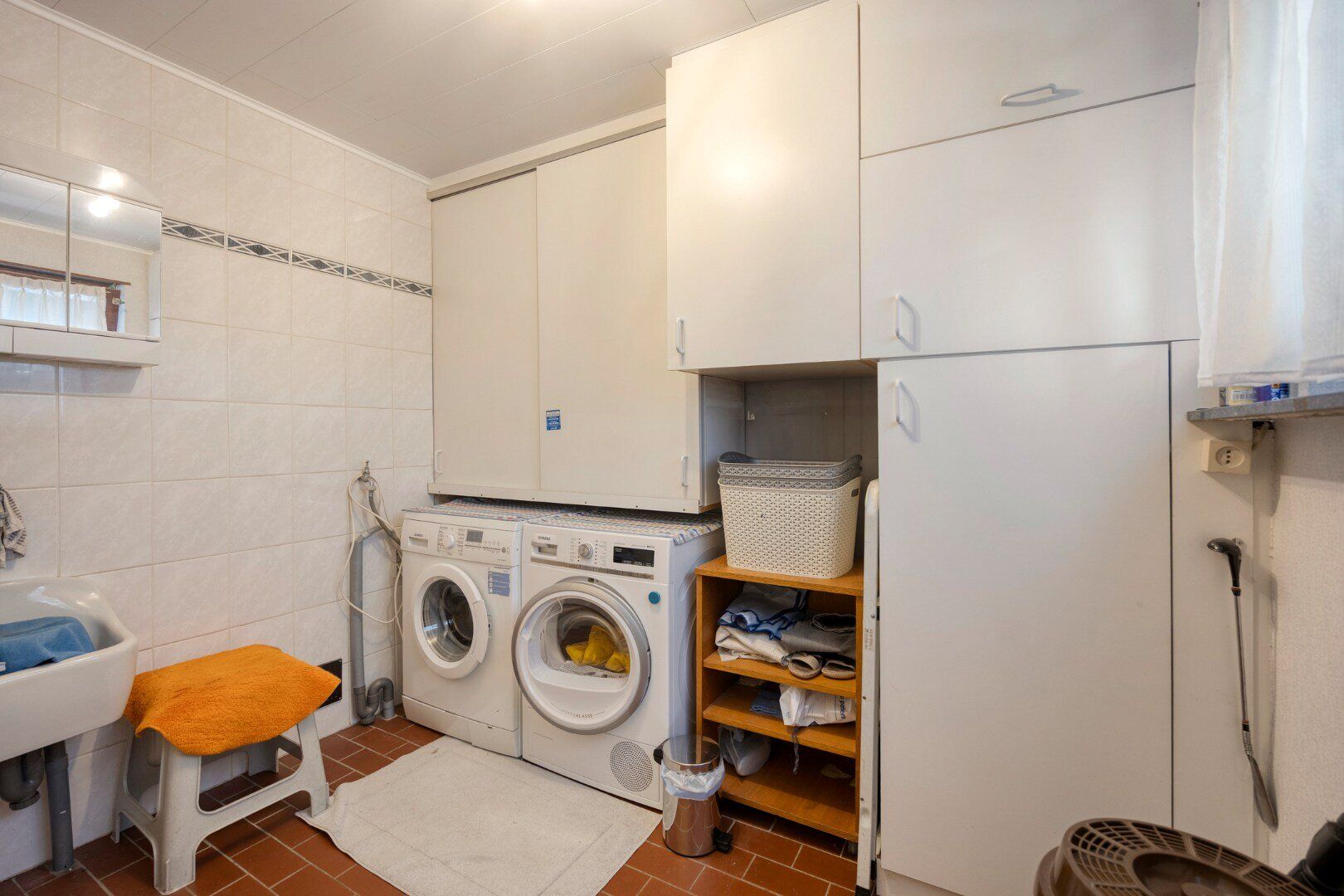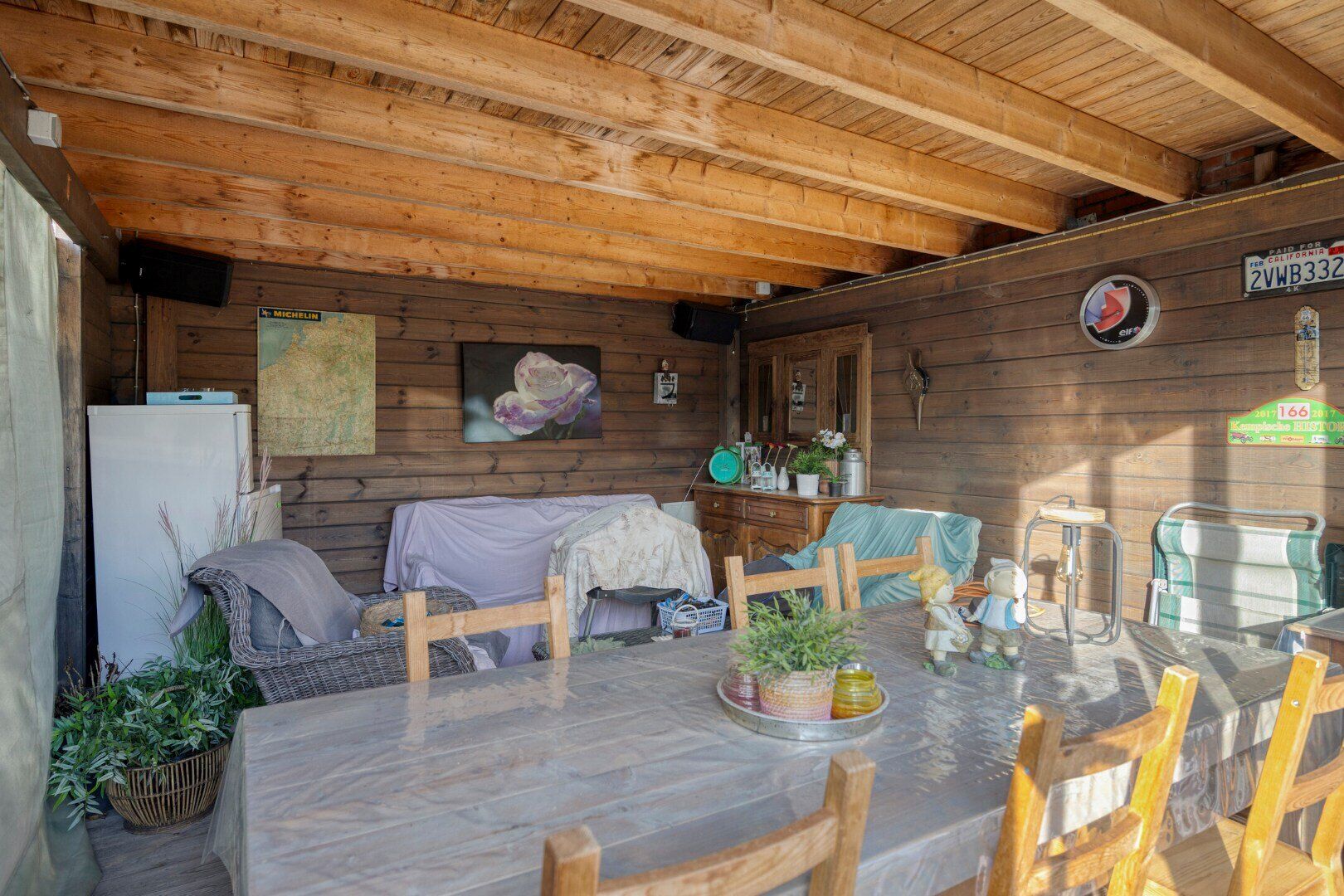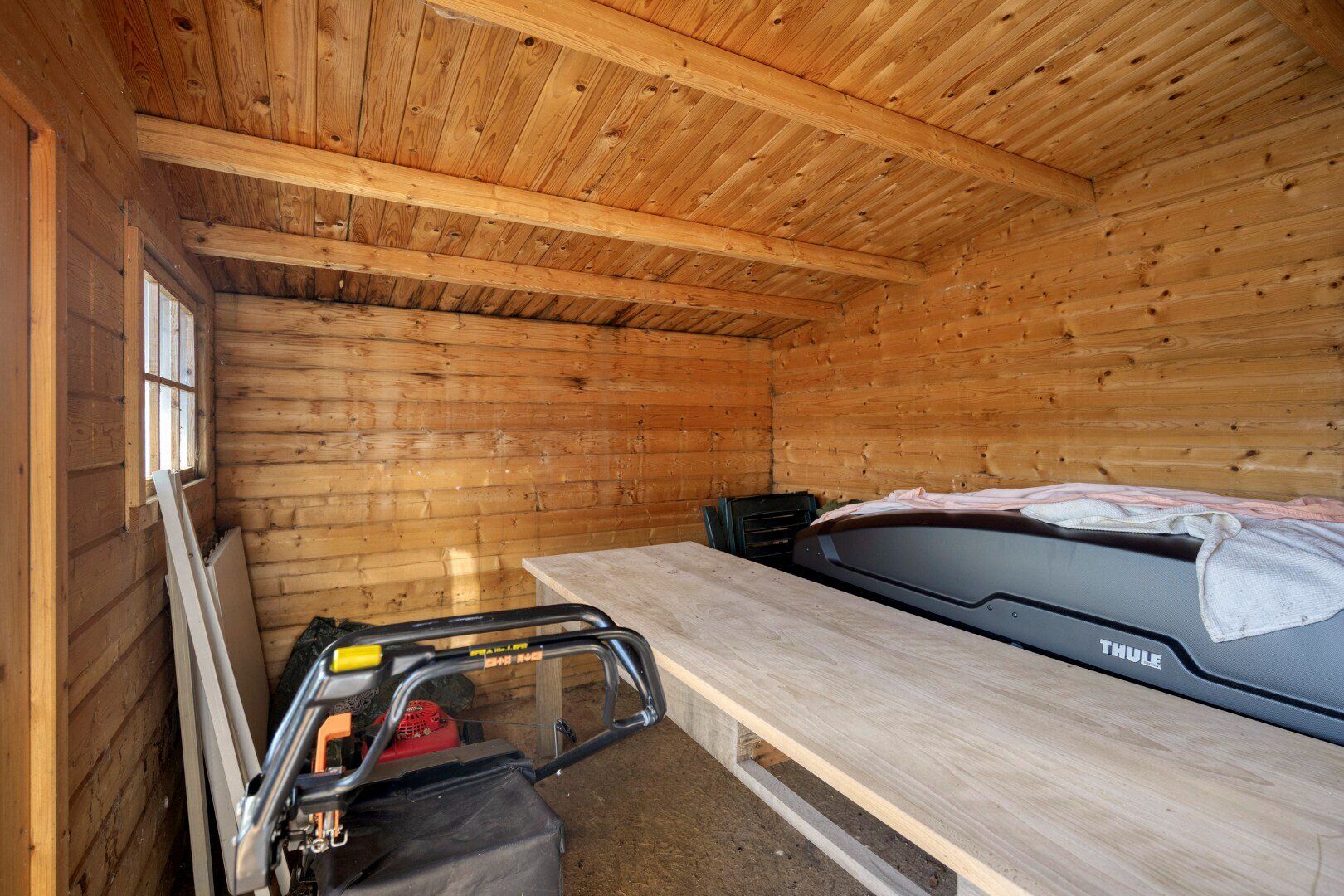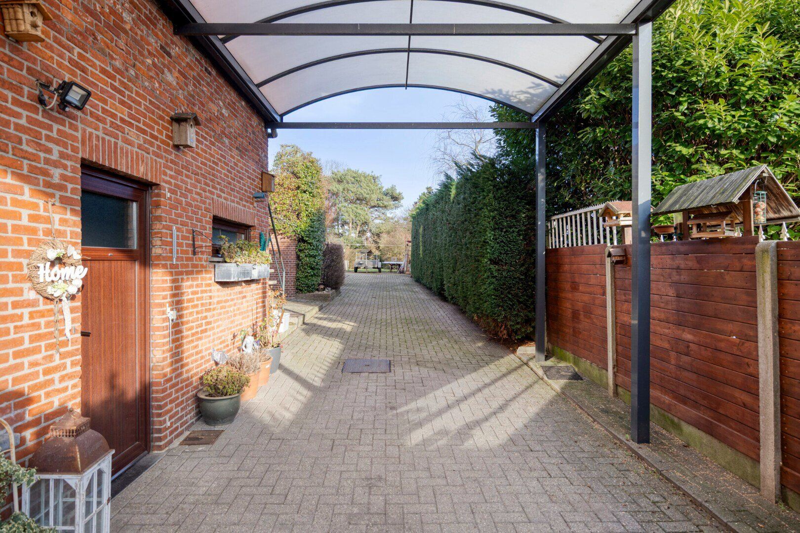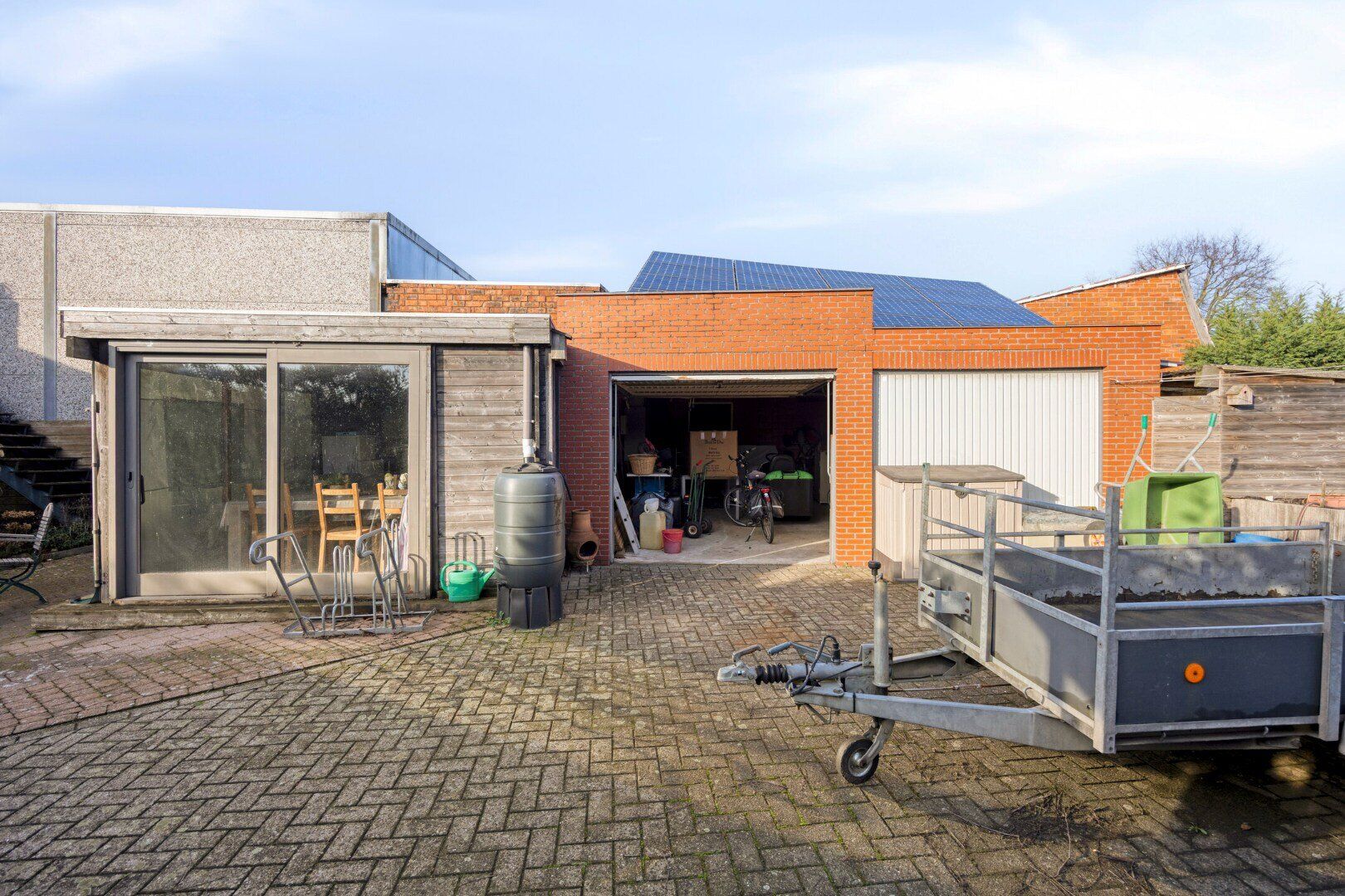 In het werkhuis, dat dienstdoet als extra opbergruimte, bevindt zich de CV-ketel van de stookolieverwarming. In de tuin zijn er een dubbele garage en een gezellige houten zomerkamer met schuifraam, aangevuld met een extra tuinhuis achteraan. Vanuit de carport, die afgesloten wordt met een poort, heb je directe toegang tot de keuken.
