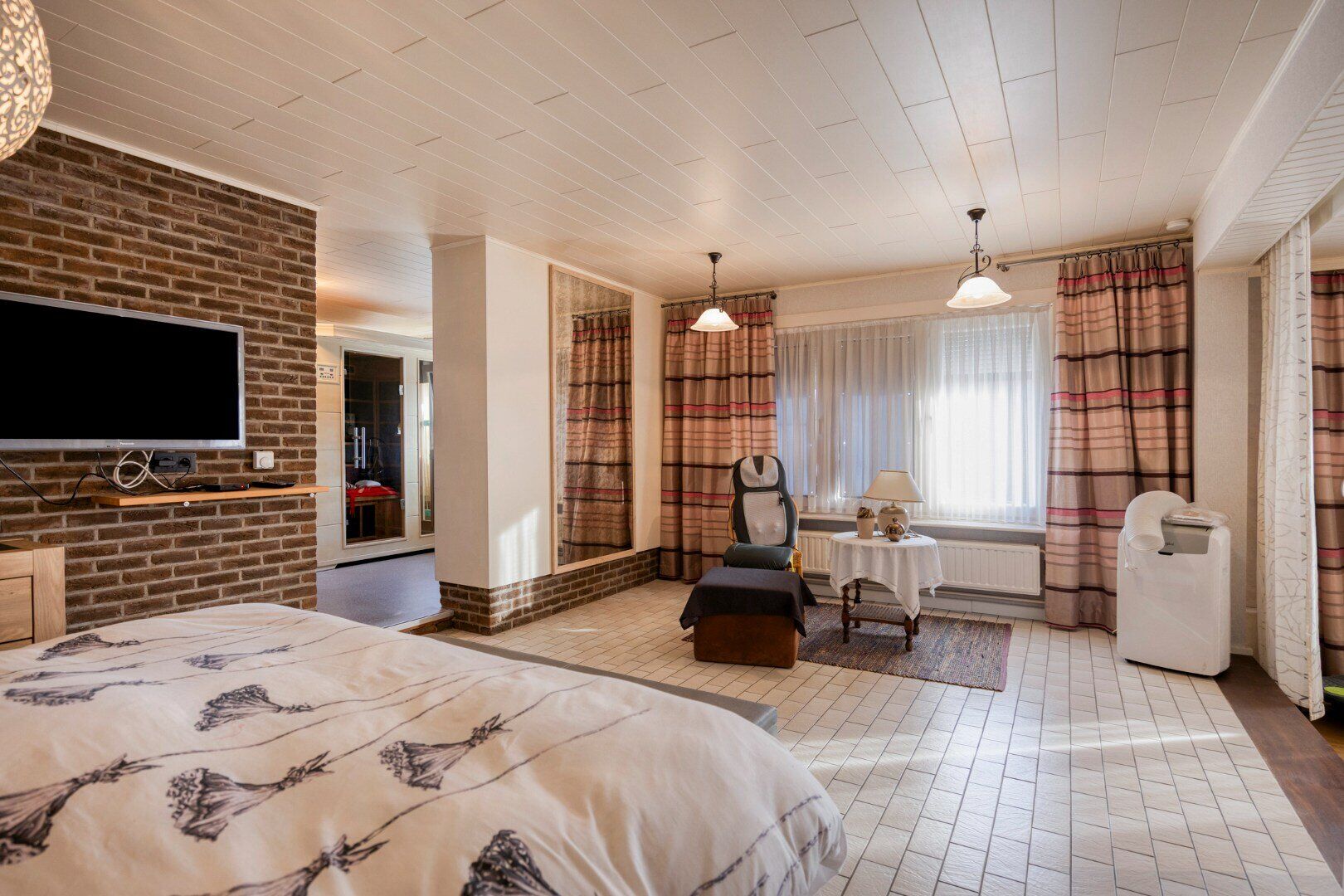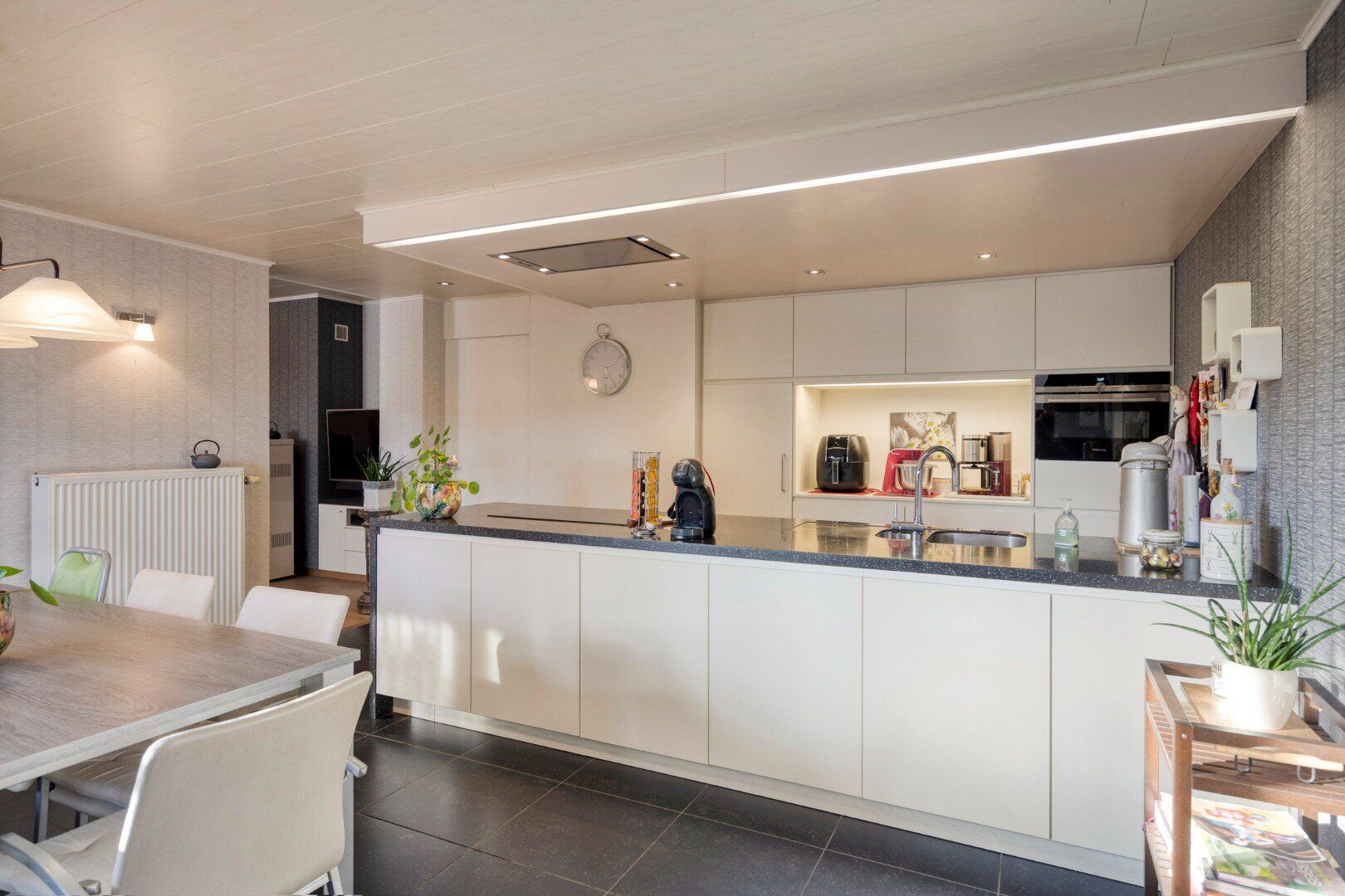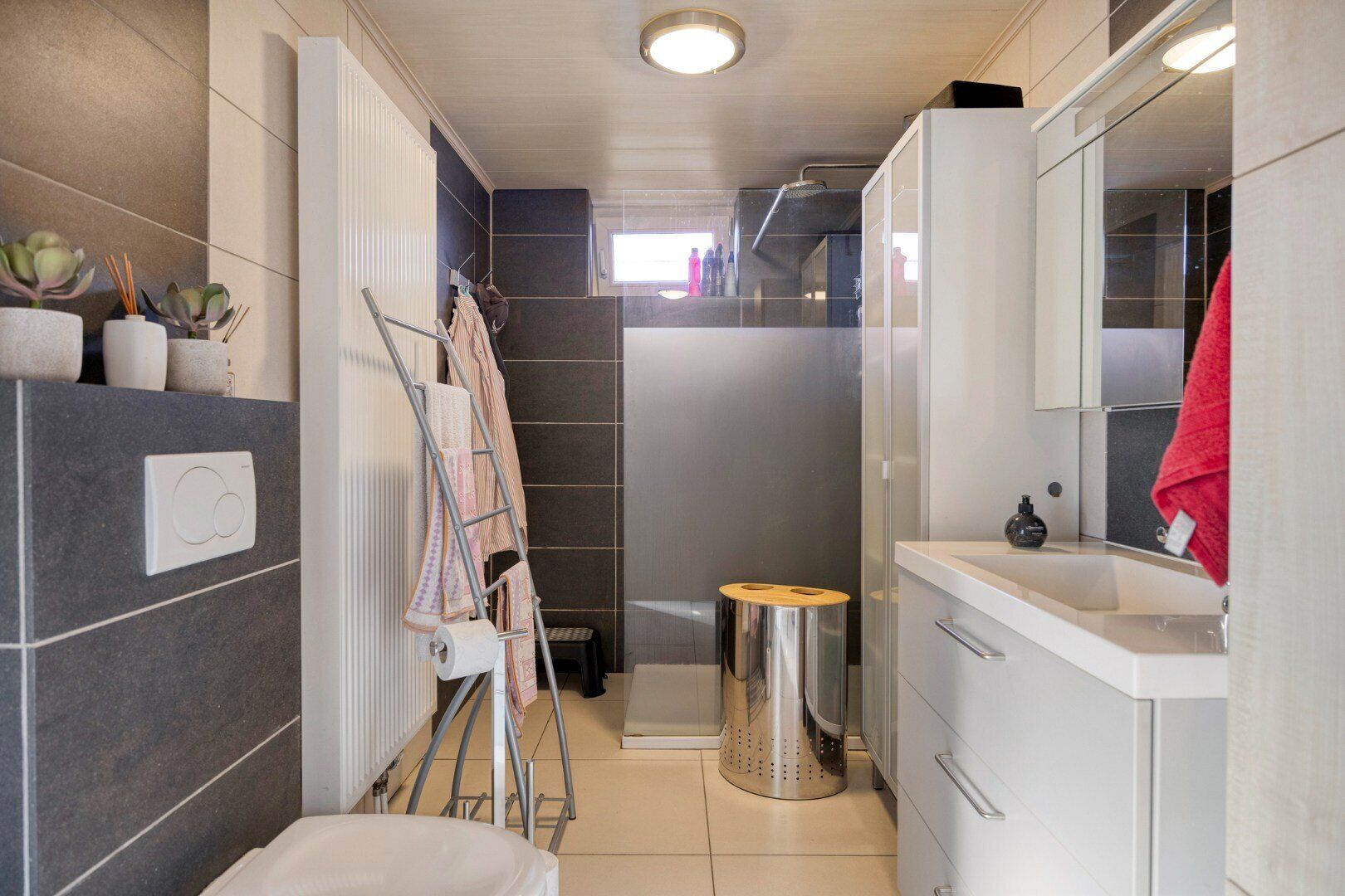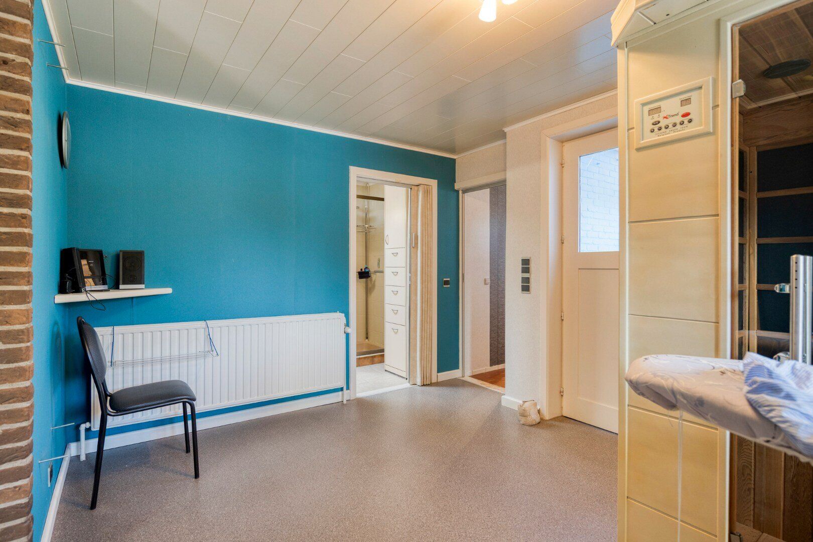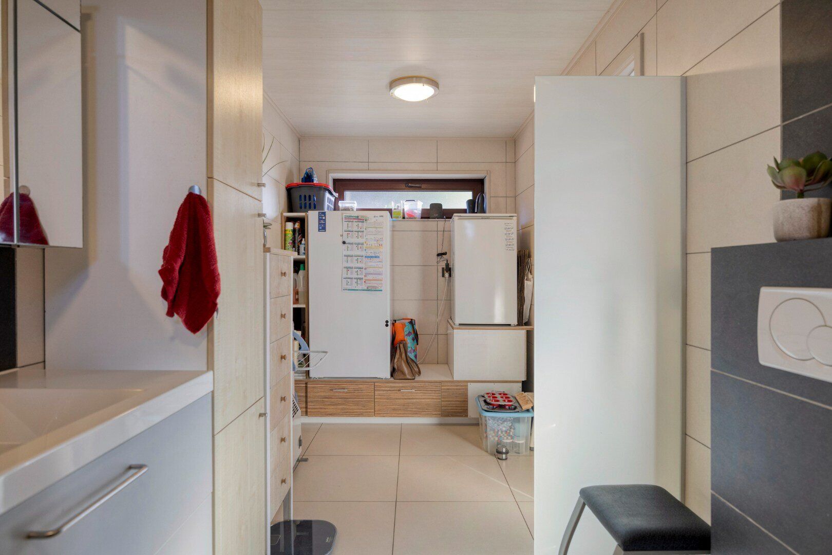 In het werkhuis, dat dienstdoet als extra opbergruimte, bevindt zich de CV-ketel van de stookolieverwarming. In de tuin zijn er een dubbele garage en een gezellige houten zomerkamer met schuifraam, aangevuld met een extra tuinhuis achteraan. Vanuit de carport, die afgesloten wordt met een poort, heb je directe toegang tot de keuken.