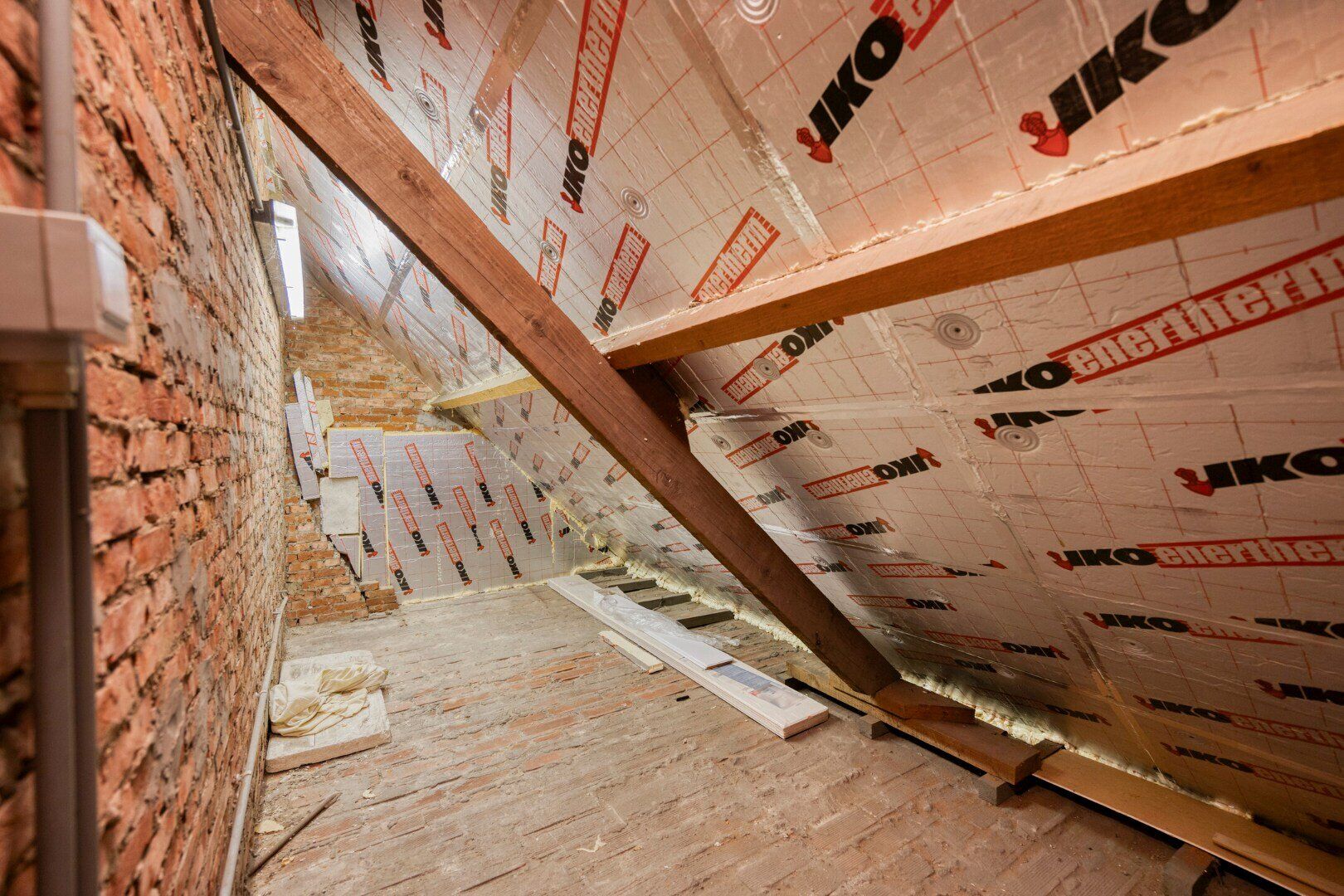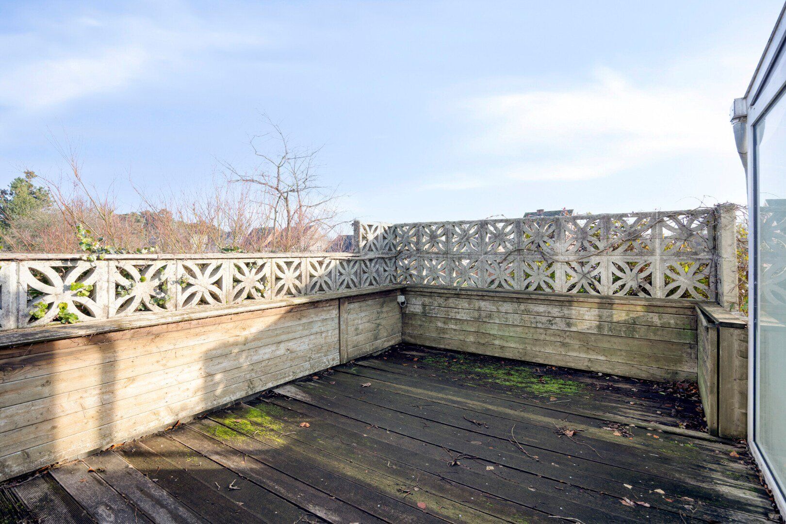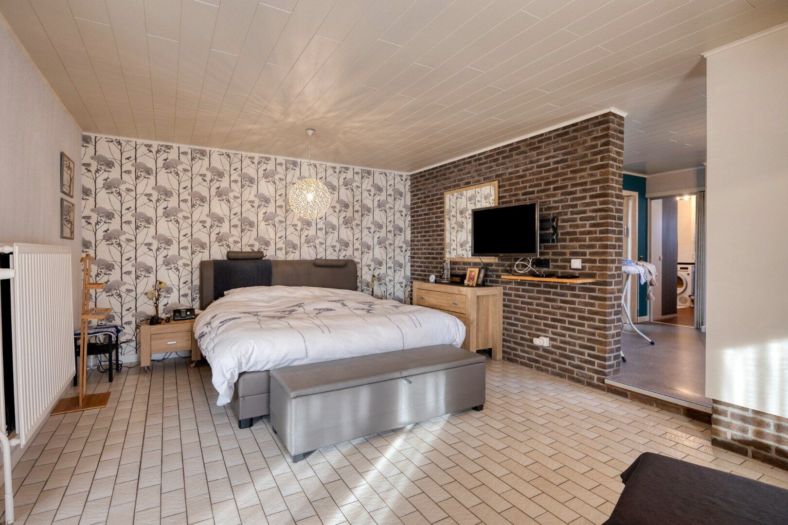 De verdieping deed vroeger dienst als kangoeroewoning en is bijgevolg zeer ruim ingedeeld. Zo zijn er vier slaapkamers, waarvan één ingericht als dressing met inbouwkasten, een volledig betegelde badkamer met ligbad, douchecel en dubbele wastafel in meubel, een apart toilet en een wasplaats met inbouwkasten en uitgietbak. Achteraan bevindt zich nog een deels te renoveren (de dakplaten werden in 2025 vernieuwd) veranda die aansluit op het dakterras. Gezien de royale oppervlakte biedt deze verdieping bijzonder veel mogelijkheden. Een vaste trap geeft uit op de deels ingerichte zolderverdieping met mezzanine en deels bergruimte. Het dak werd in 2016 voorzien van nieuwe pannen en harde isolatieplaten.