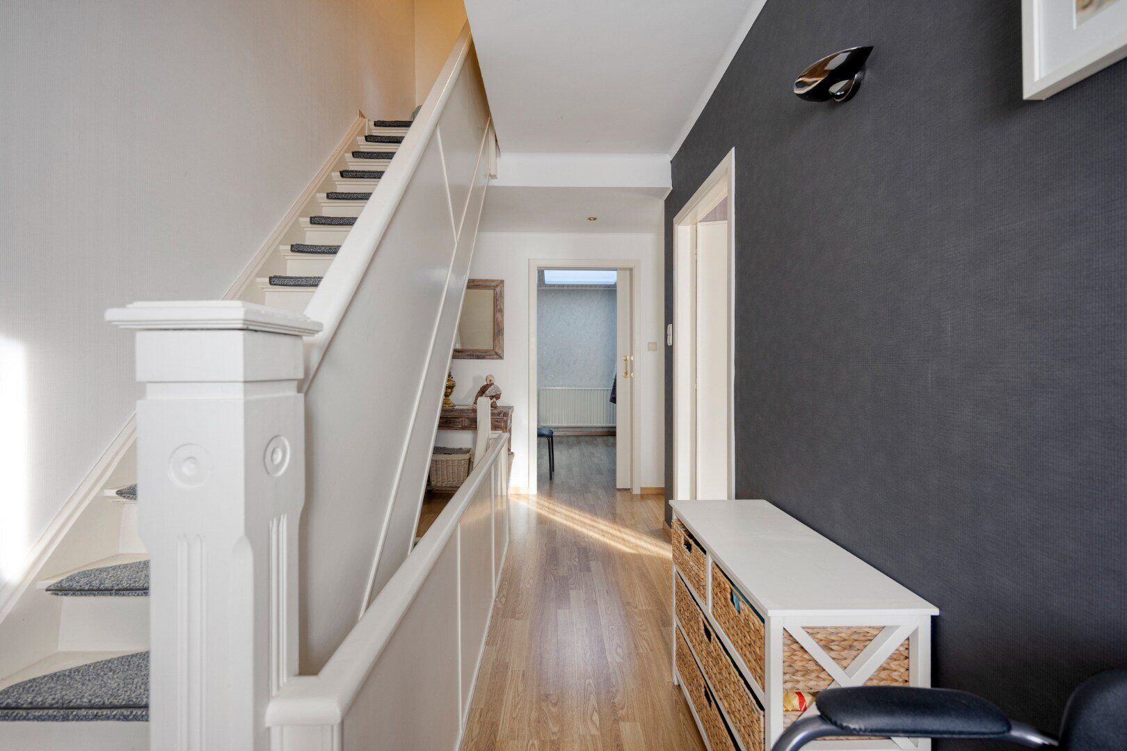 Via de inkomhal kom je in de ruime leefruimte op parketvloer, die is opgedeeld in een zithoek, een eethoek, een open leefkeuken en een extra ruimte die perfect kan worden ingericht als bureau, speelkamer of leeshoek. De degelijke keuken is uitgerust met een koelkast, microgolfoven, inductiekookplaat, afzuigkap, vaatwasser, spoeltafel, voldoende kastruimte en een gezellige ontbijthoek. De aansluitende, volledig betegelde badkamer omvat een douche, wastafel in meubel met extra kastruimte, toilet en de aansluitingen voor wasmachine en droogkast. De droge kelder doet perfect dienst als voorraadruimte. De gelijkvloers verdieping werd in 2011 gerenoveerd en voorzien van een nieuw verwarmingsnet, vloeren, keuken, badkamer, gyprocplaten met isolatie, ... De ramen werden overal stelselmatig vernieuwd en beschikken over dubbele beglazing.