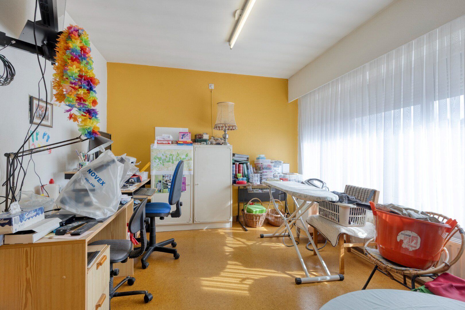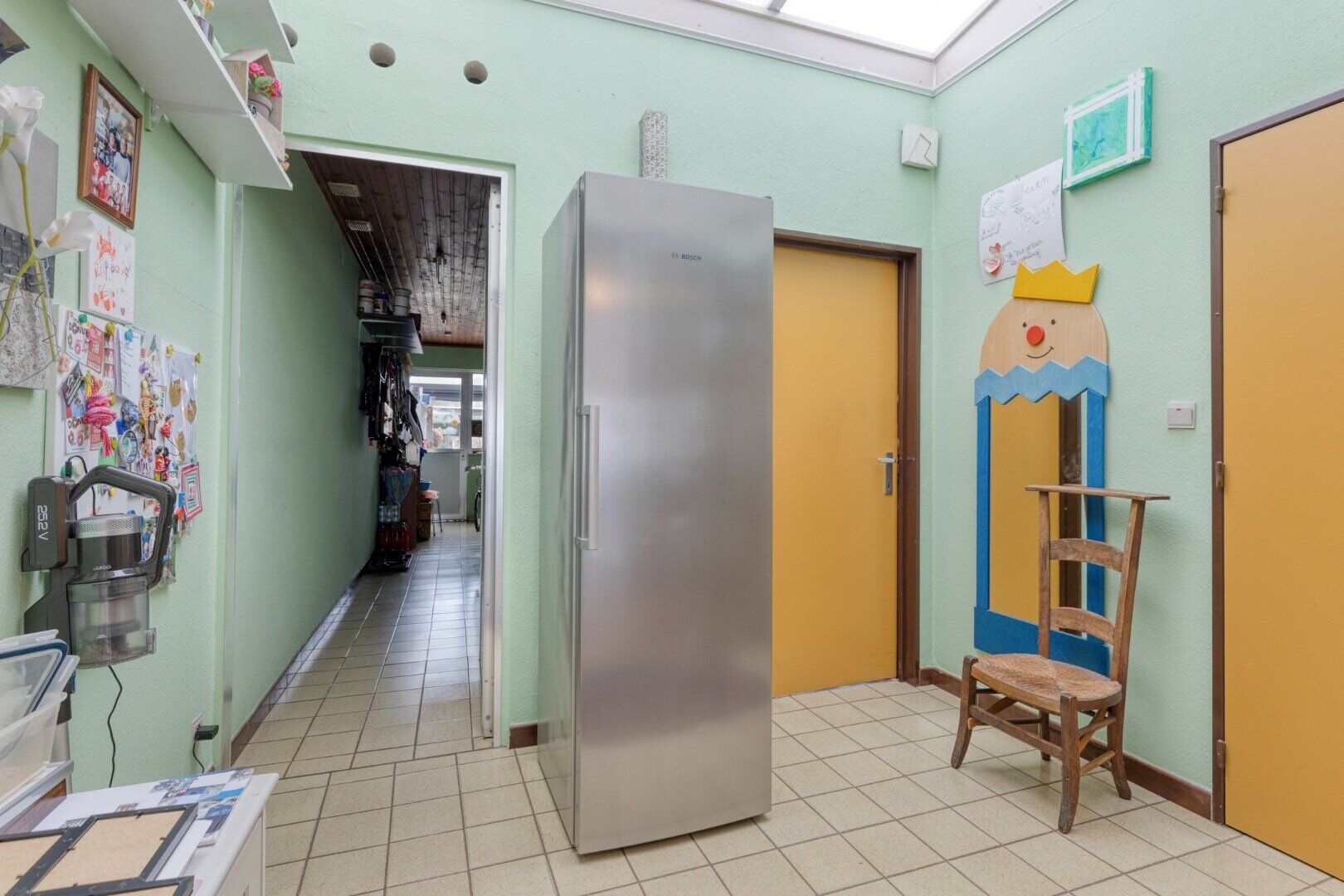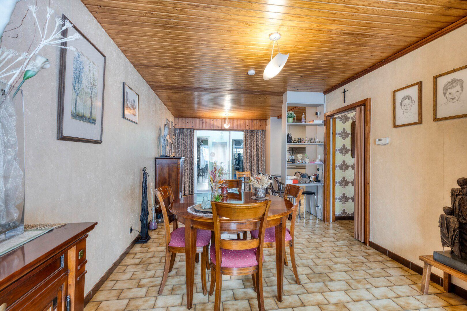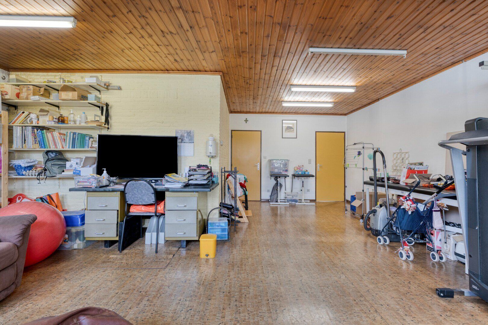 Achter het woongedeelte bevindt zich op het gelijkvloers nog aanbouw van ca 70 m² die altijd dienst heeft gedaan als praktijk. Hier zal tal van mogelijkheden voor de uitbreiding van de woning, opslagmogelijkheden, praktijk, atelier,...