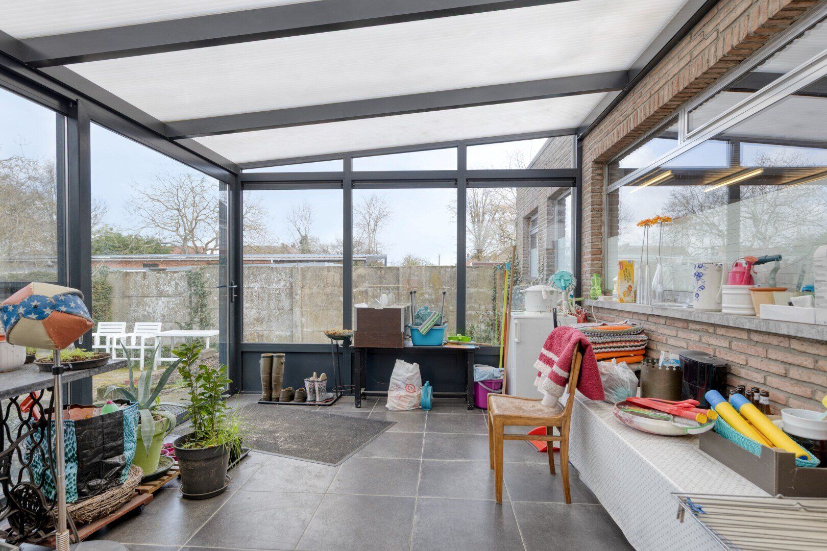 Tot slot werd hier ook een veranda van 20 m² geplaatst waar je kan genieten van het uitzicht over de tuin.