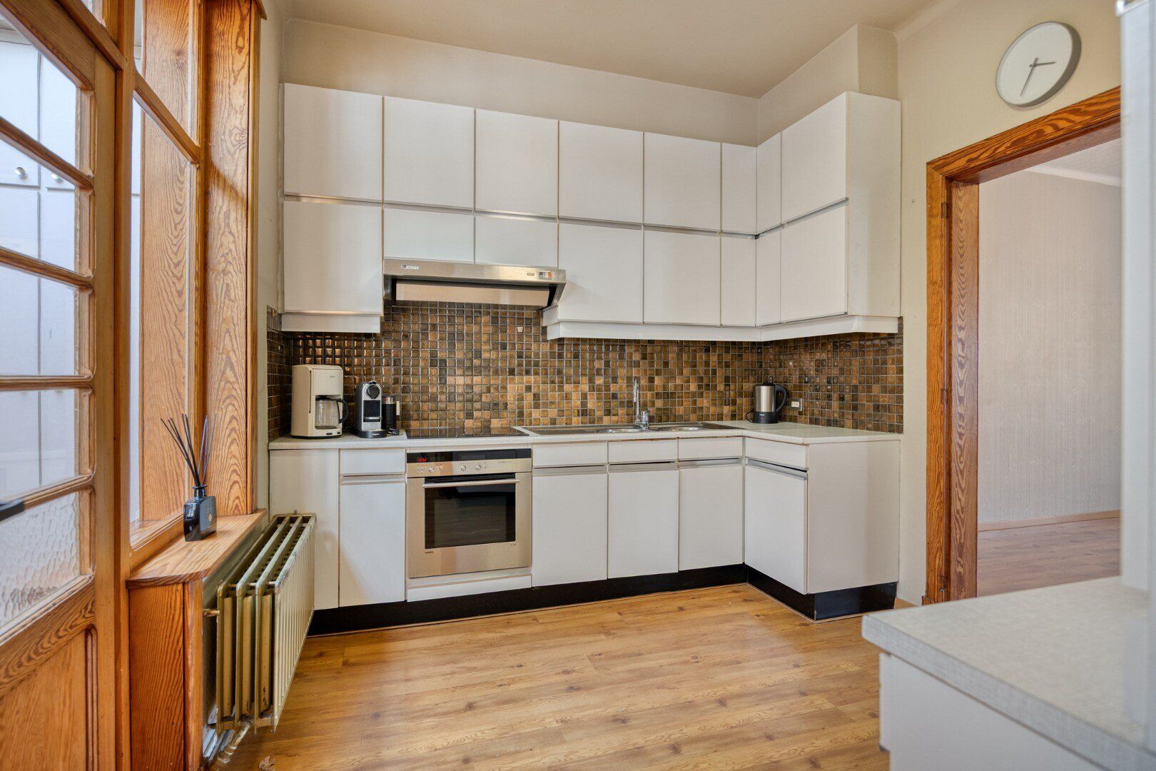 De leefruimte van de woning is zeer ruim, geniet van aangenaam veel lichtinval en is ingedeeld in een eethoek en gezellige zithoek . Als we verder lopen komen we in de ruime eetkamer met aangrenzend de basis uitgeruste keuken. Tot slot bevinden ook de vernieuwde badkamer en de technische ruimte zich op het gelijkvloers.