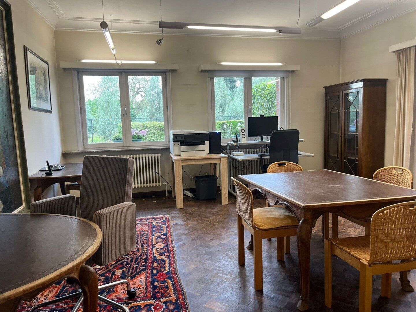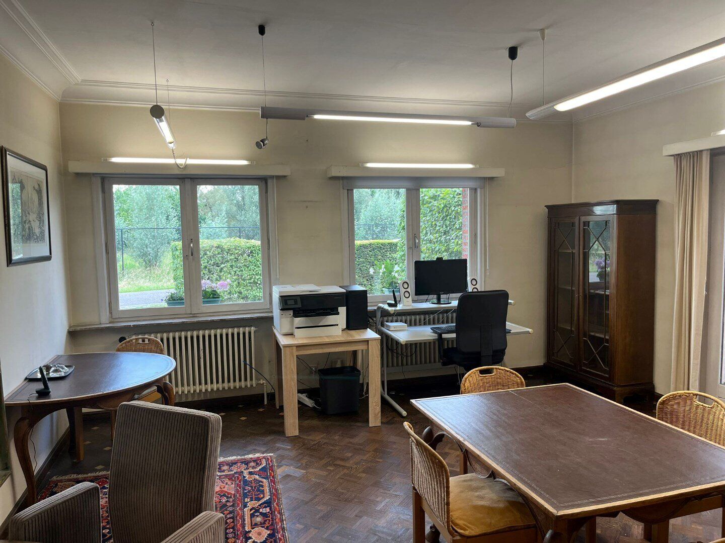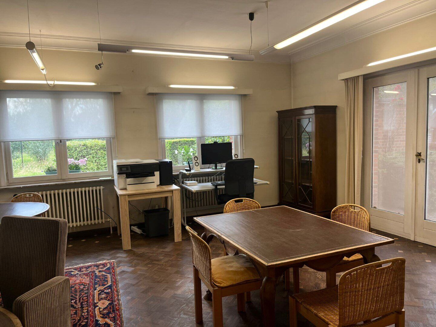 Een bijzondere troef van deze kantoorruimte is de aanwezigheid van ingebouwde kasten. Deze bieden voldoende opbergruimte voor materialen en documenten, wat bijdraagt aan een georganiseerde en nette werkomgeving.