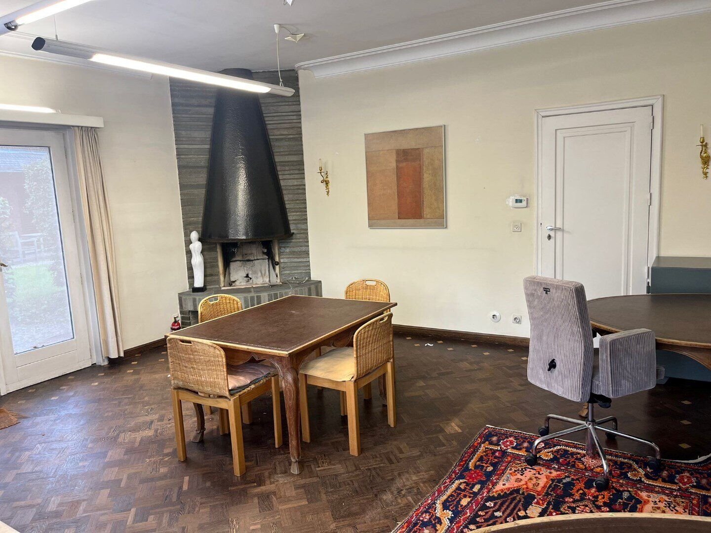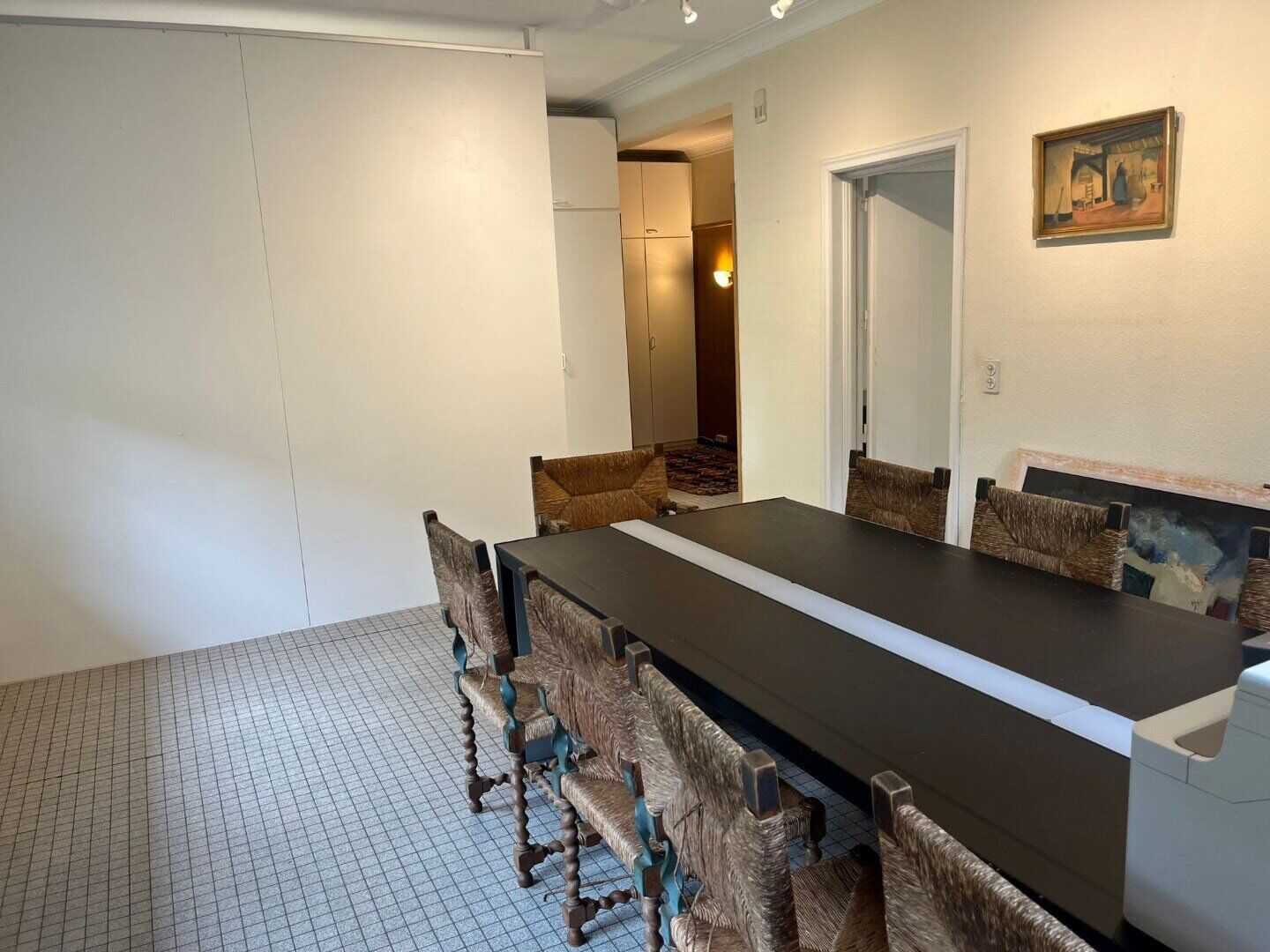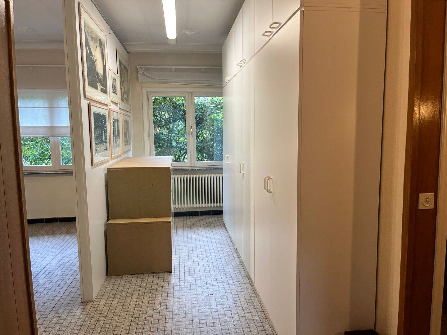 Een bijzondere troef van deze kantoorruimte is de aanwezigheid van ingebouwde kasten. Deze bieden voldoende opbergruimte voor materialen en documenten, wat bijdraagt aan een georganiseerde en nette werkomgeving.