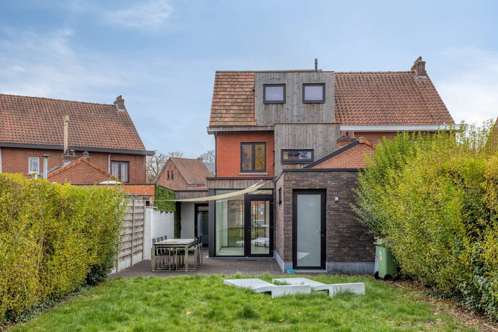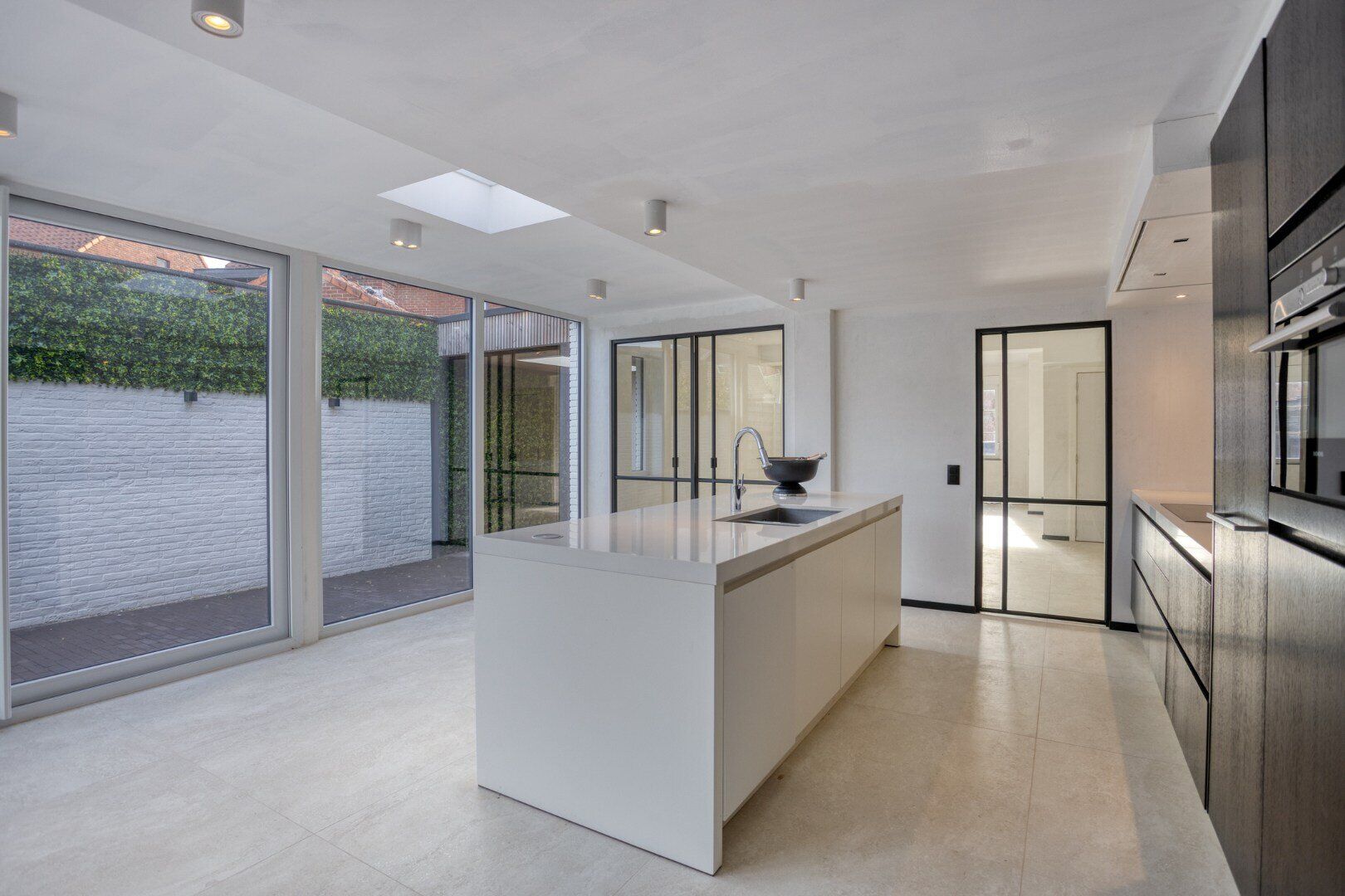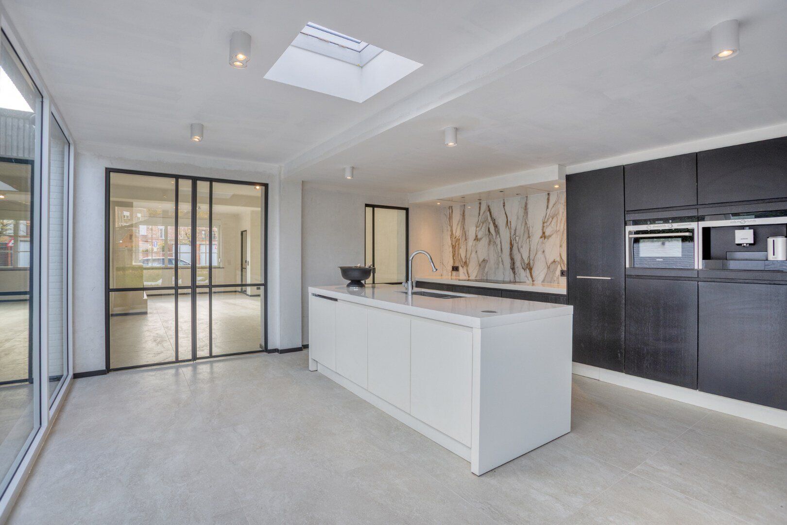 Via de inkomhal kom je in de ruime, lichtrijke leefruimte die naadloos aansluit op de open keuken. De keuken is volledig uitgerust met Siemens-toestellen (grote koelkast, aparte diepvries, wijnkoeler en ingebouwd koffiemachine) en werd stijlvol afgewerkt met oog voor kwaliteit. Twee elegante stalen en glazen deuren verbinden keuken en leefruimte. Achter de keuken bevinden zich een gastentoilet en een praktische berging met toegang tot de zonnige tuin en het terras. Achteraan de tuin is nog een tweede terras voorzien, ideaal om te genieten van de avondzon. De woning beschikt bovendien over een droge kelder met extra bergruimte.