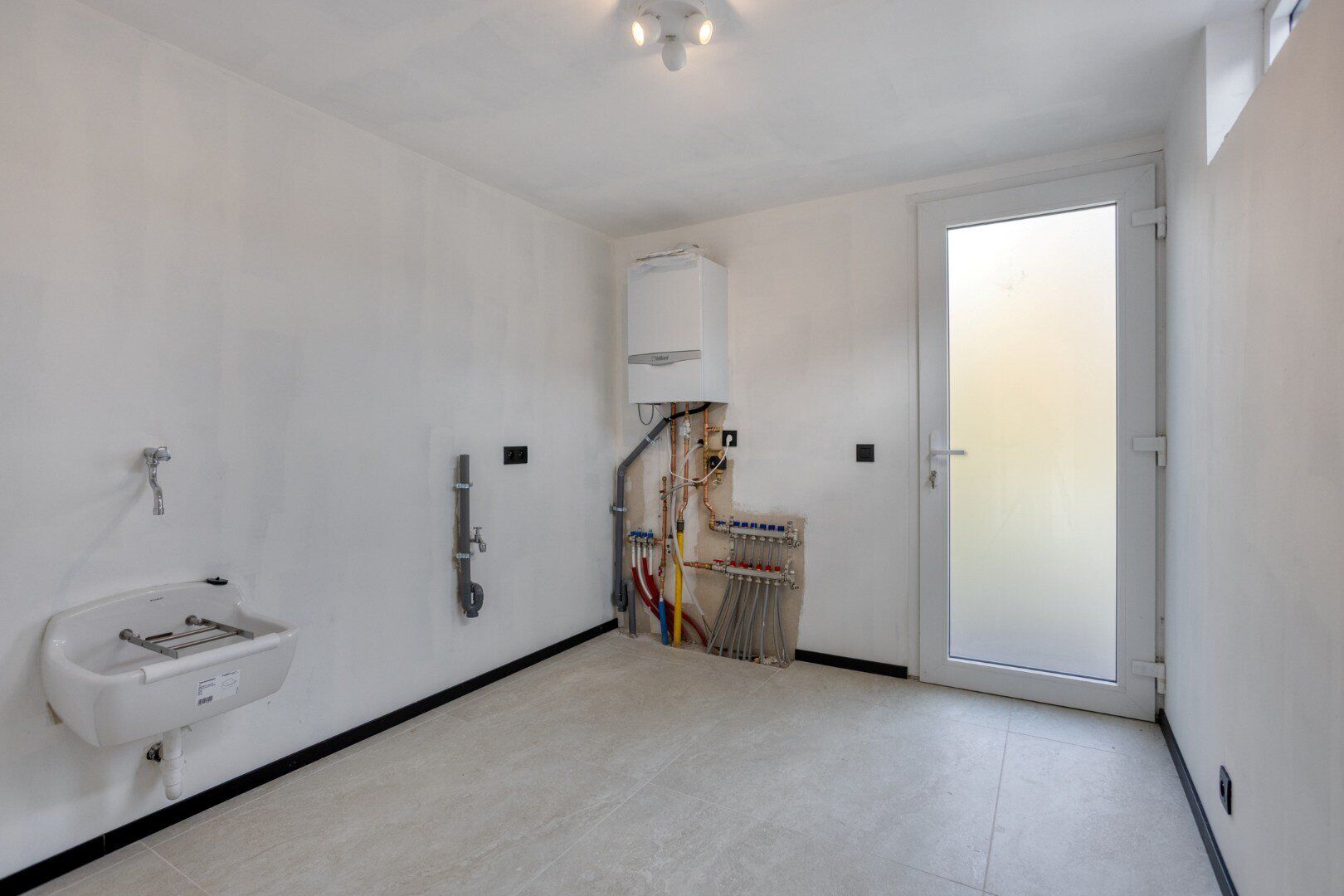 Naast de woning bevindt zich een aparte garage of berging, perfect voor fietsen, vuilnisbakken of tuingerief. Er zijn stopcontacten voorzien voor het opladen van elektrische fietsen en een doorgang naar de tuin.