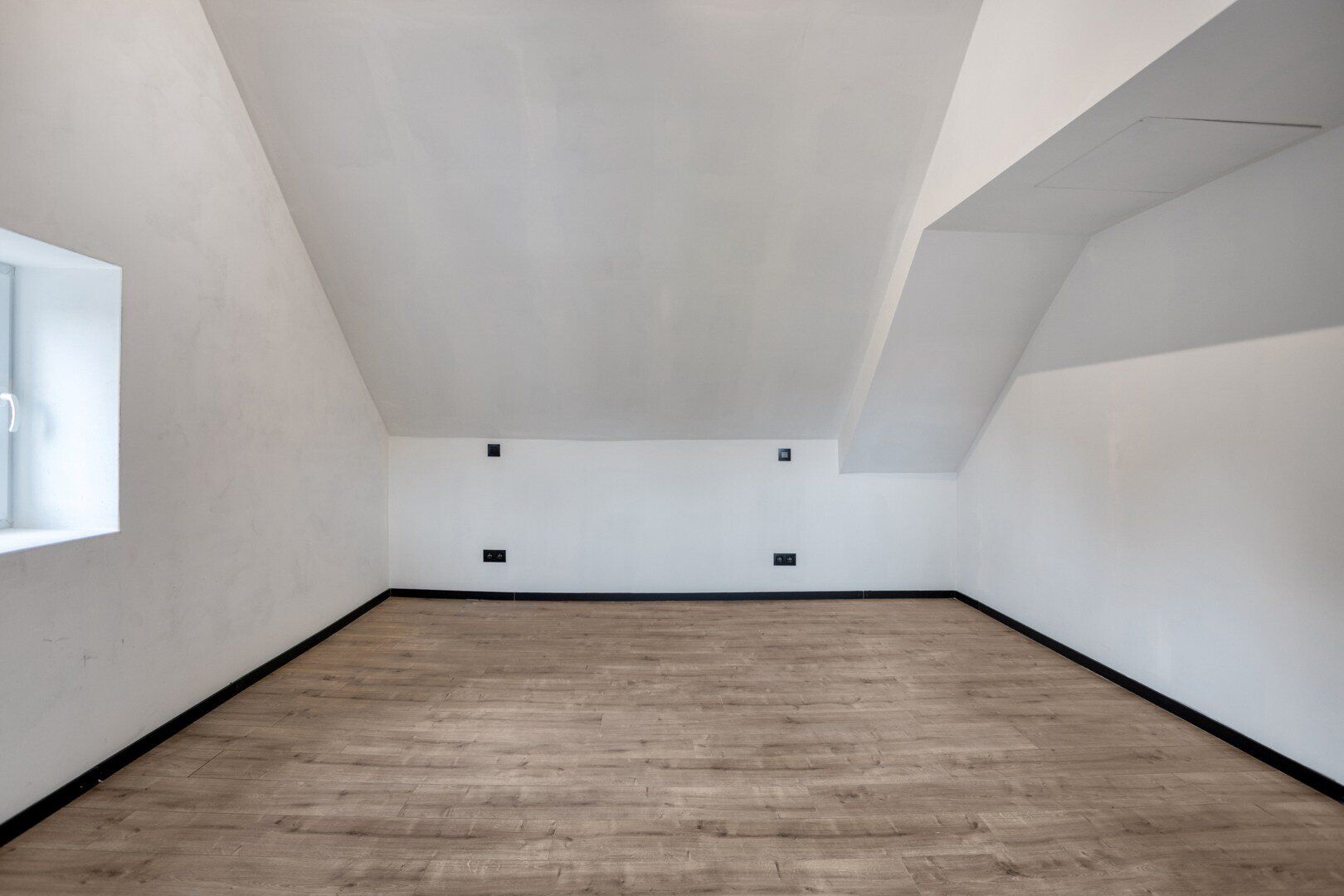 Onder het dak bevindt zich een prachtige derde slaapkamer of studio met aansluitende badkamer (lavabo en inloopdouche). Deze ruimte kan eenvoudig worden opgedeeld in twee aparte slaapkamers.